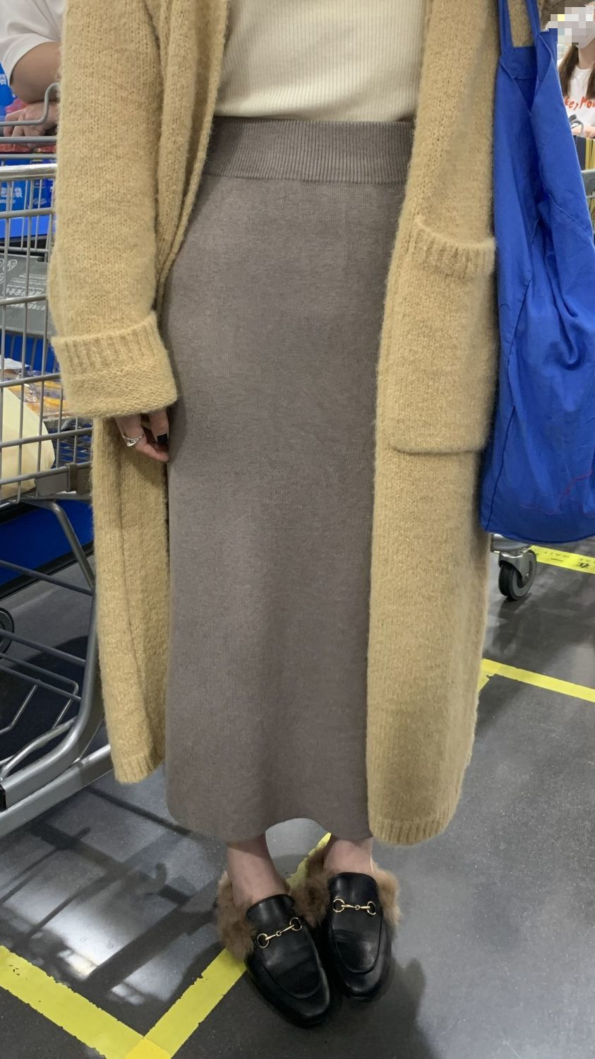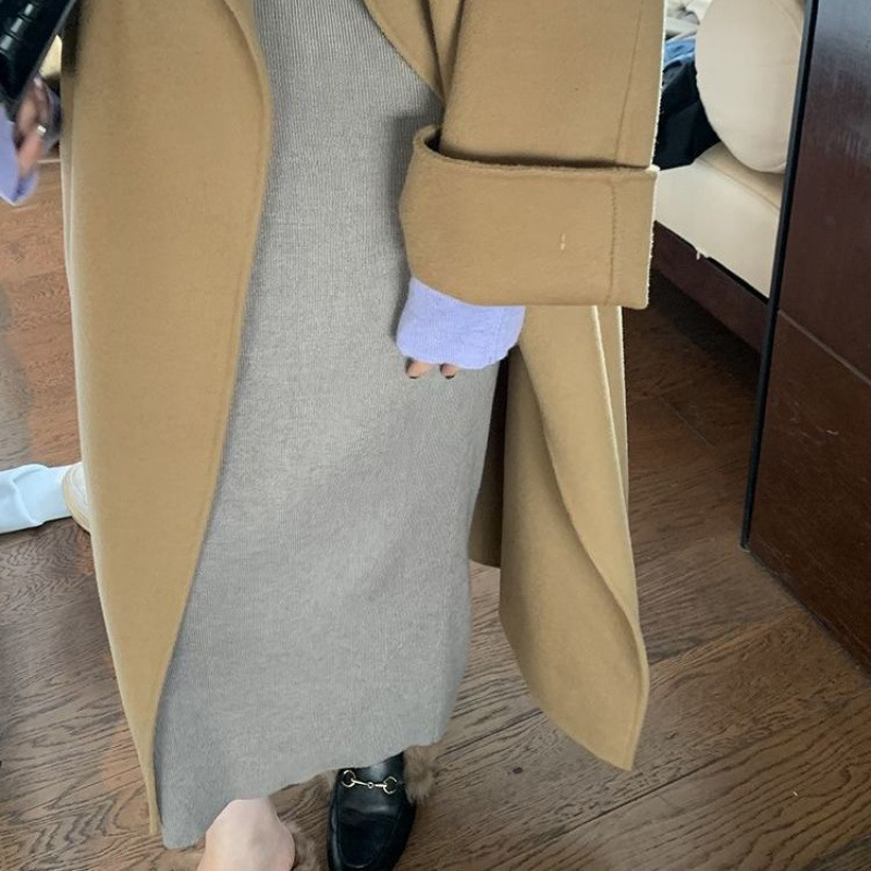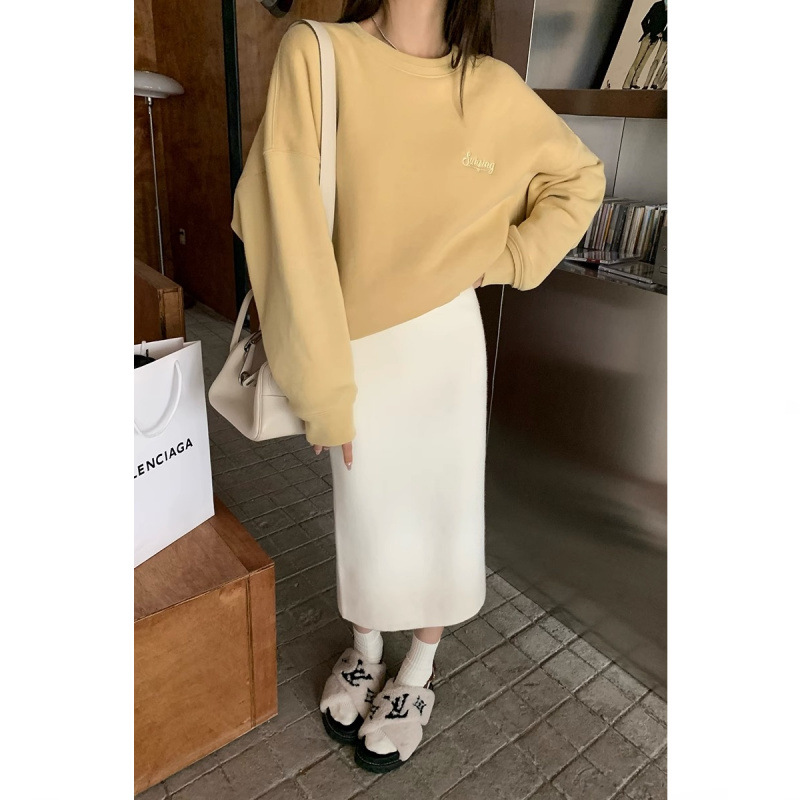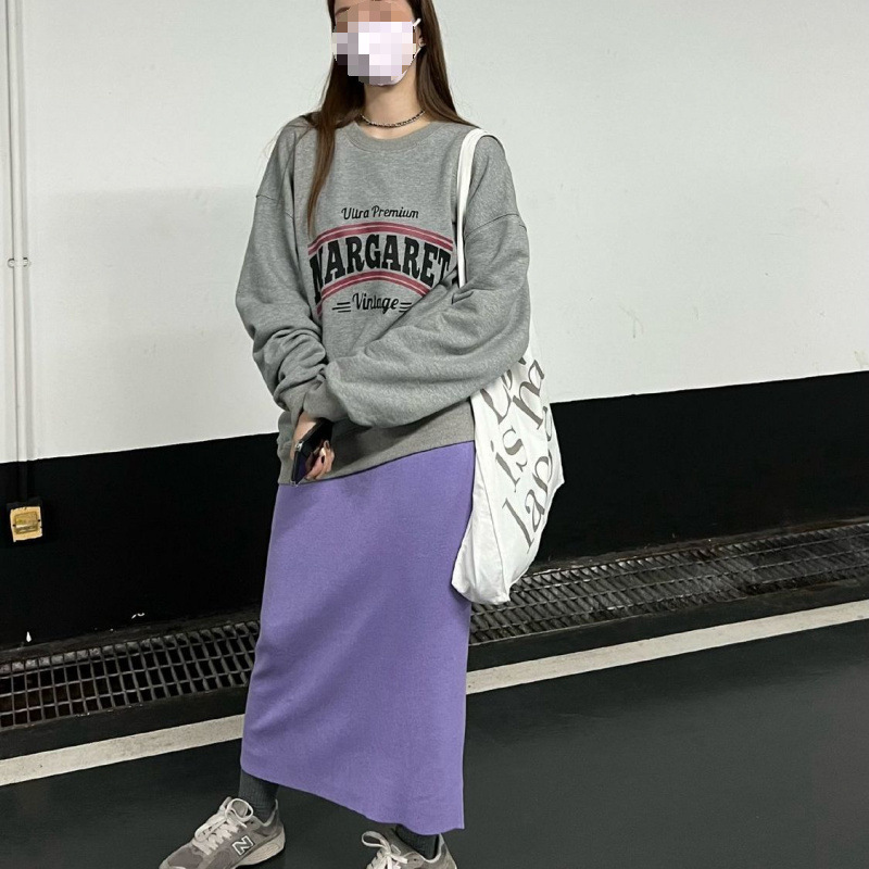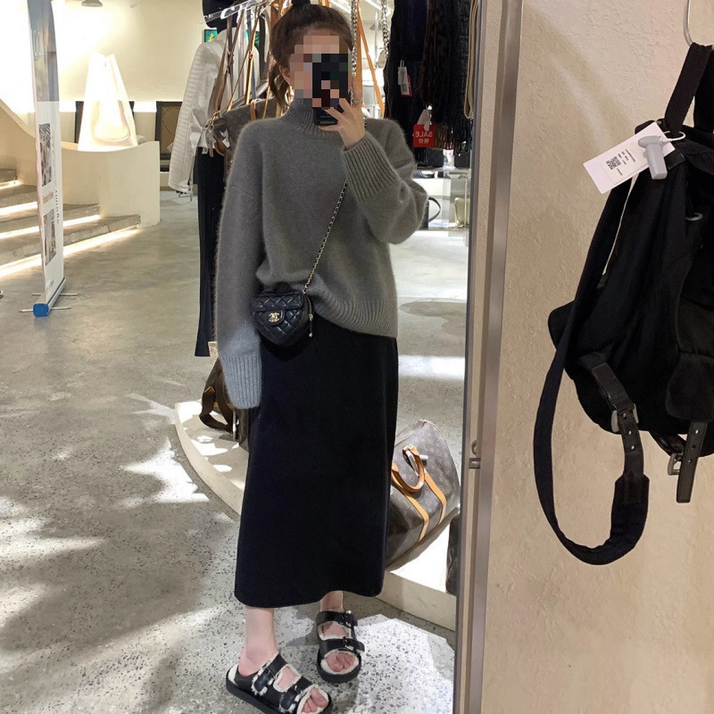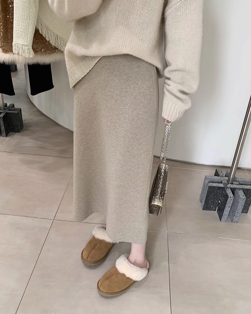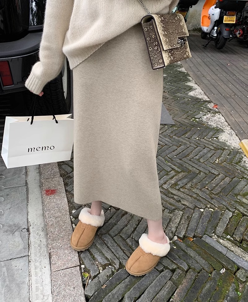 니트 스커트 가을과 겨울 중간 길이의 힙합 Unsplit 한 단계 스커트 높은 허리 양모 느슨한 두꺼운 스트레이트 스커트스토어 가기