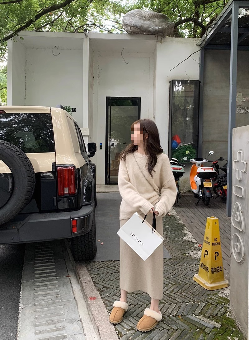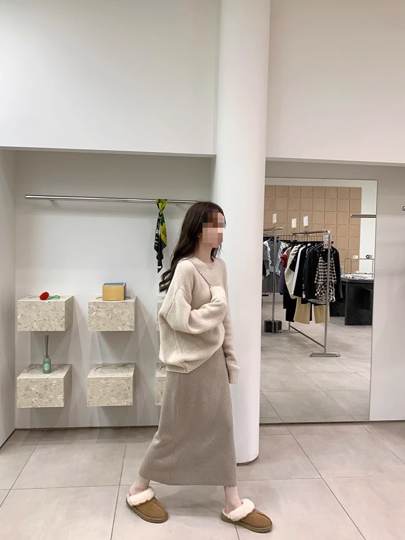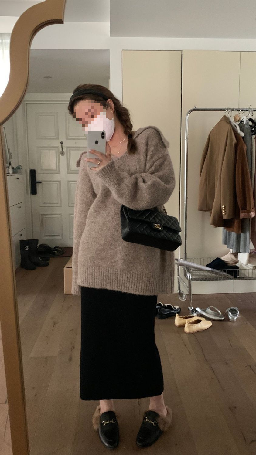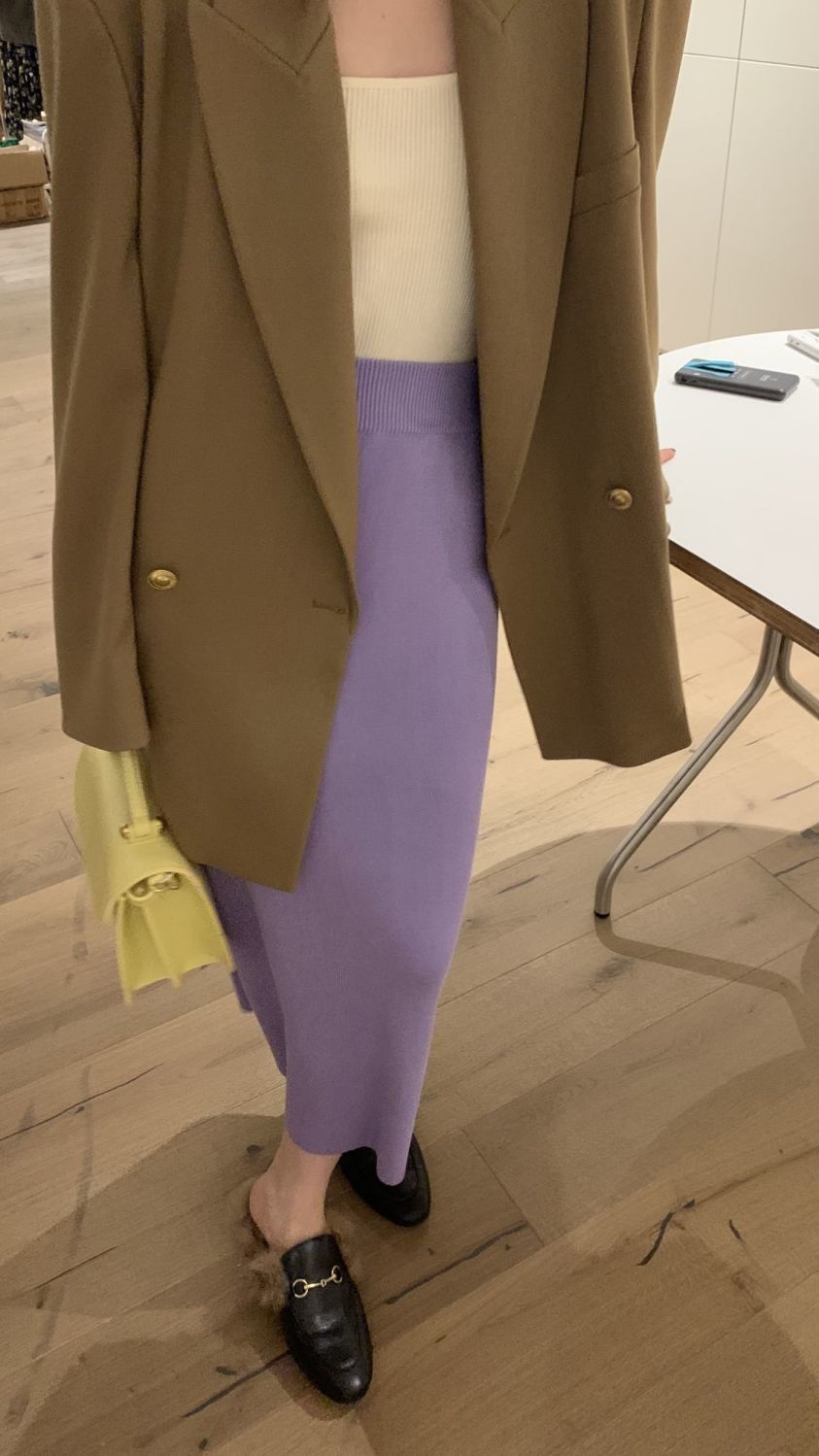 니트 스커트 가을과 겨울 중간 길이의 힙합 Unsplit 한 단계 스커트 높은 허리 양모 느슨한 두꺼운 스트레이트 스커트스토어 가기