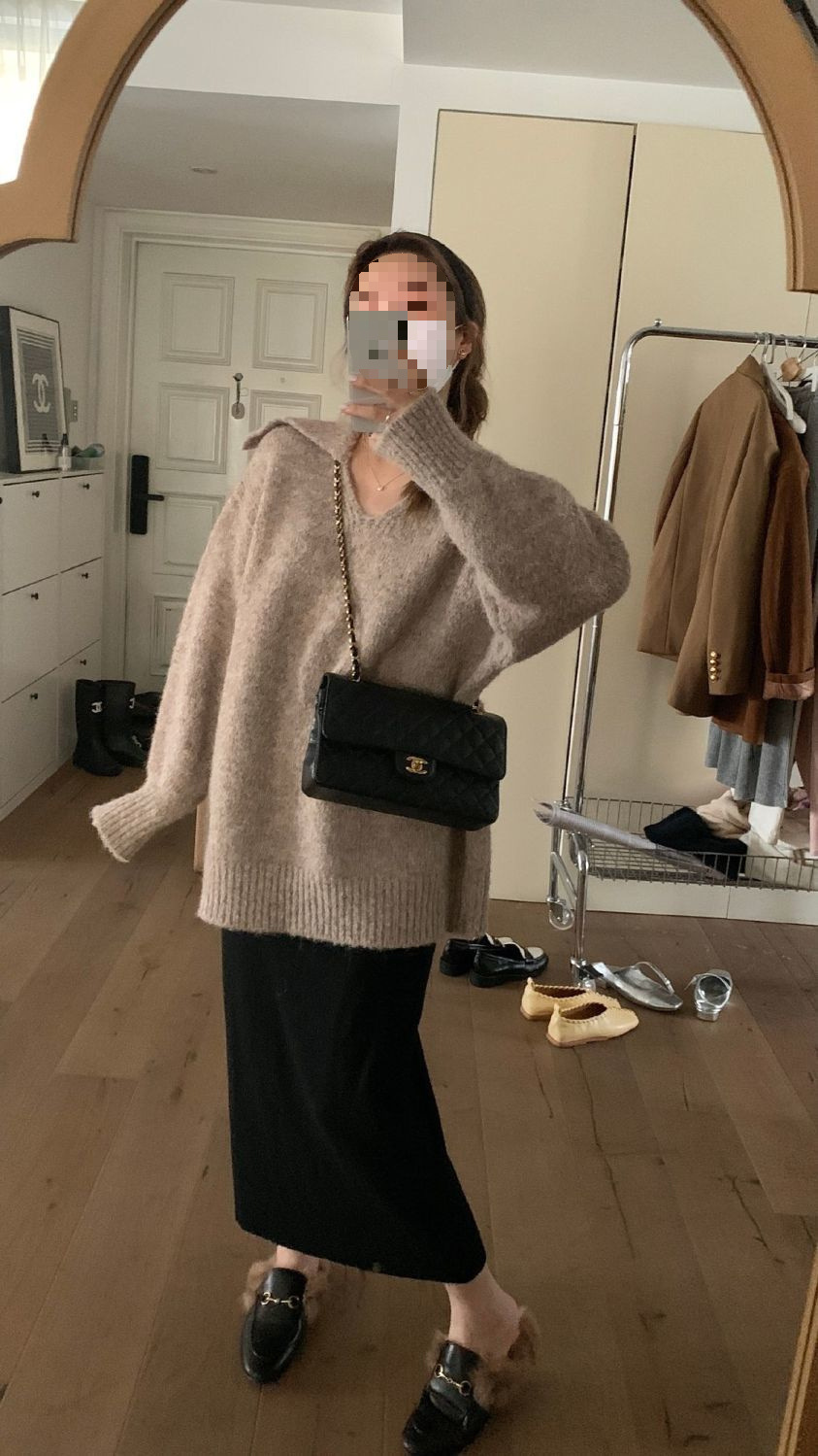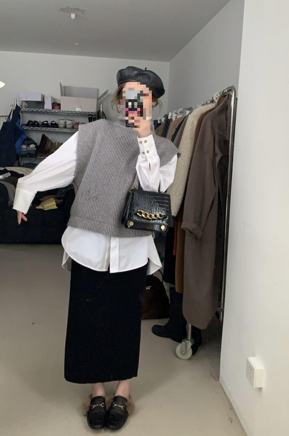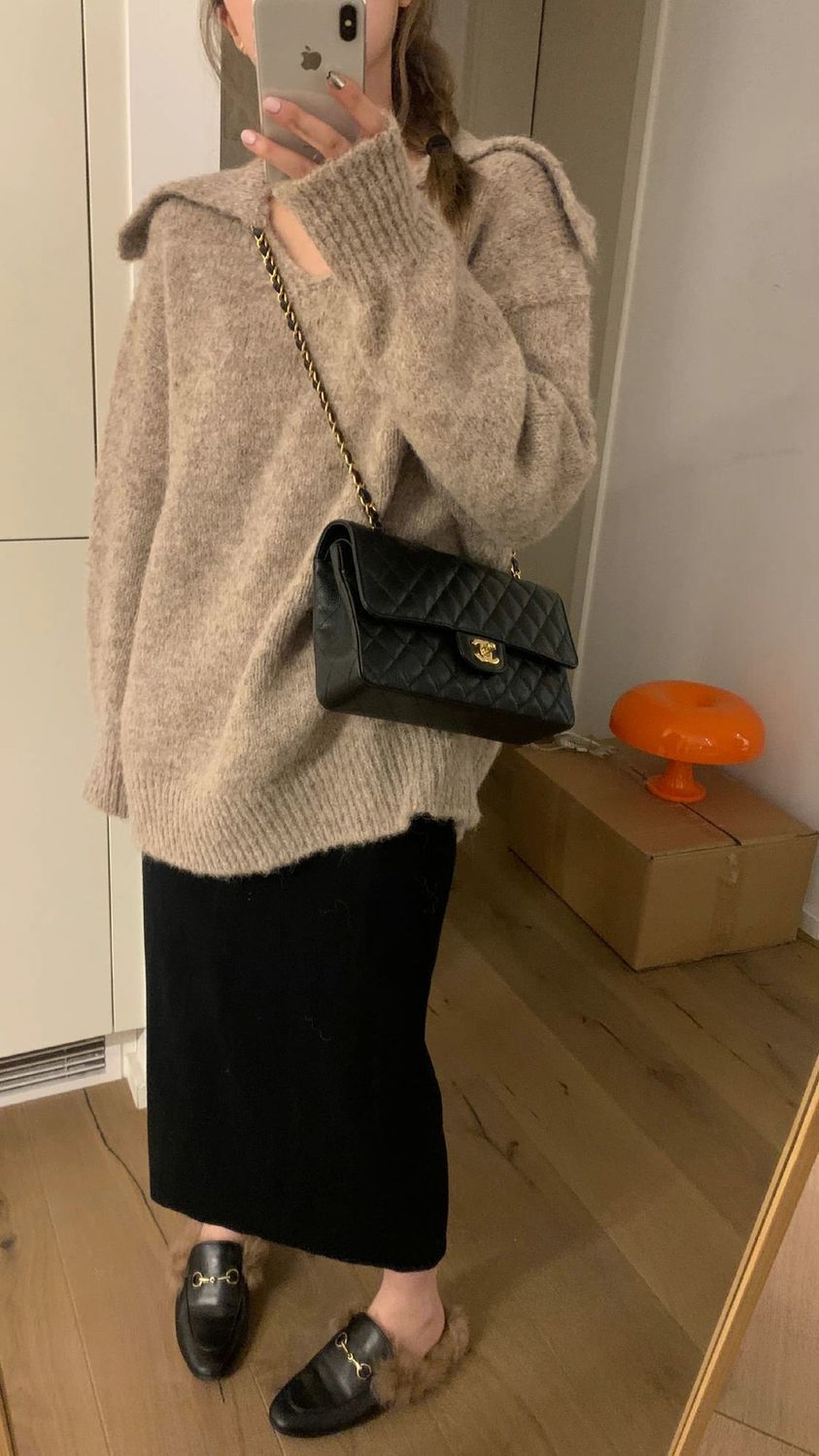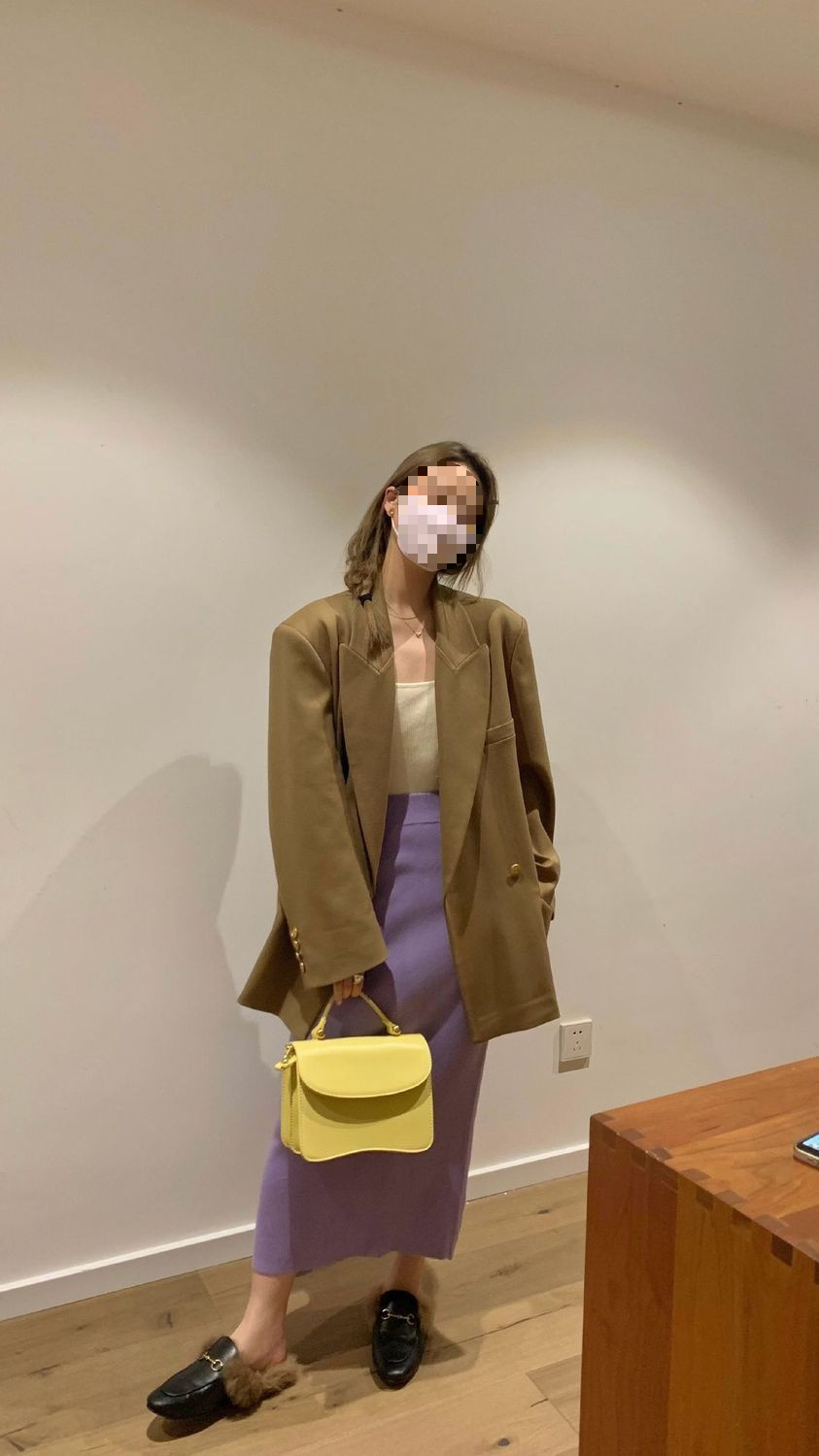 니트 스커트 가을과 겨울 중간 길이의 힙합 Unsplit 한 단계 스커트 높은 허리 양모 느슨한 두꺼운 스트레이트 스커트스토어 가기