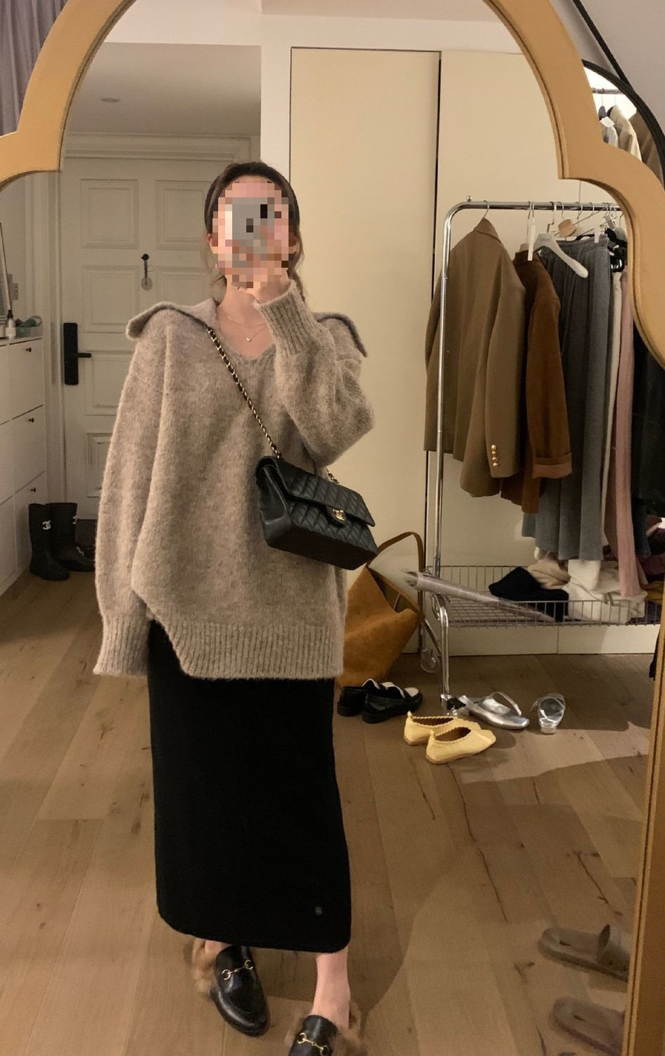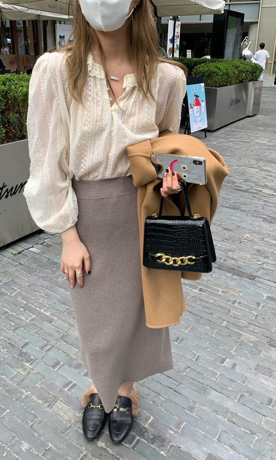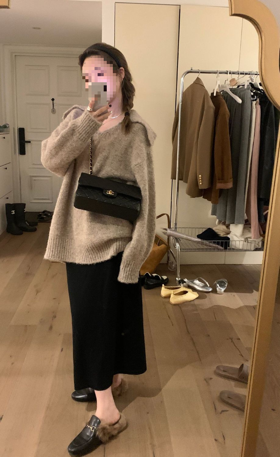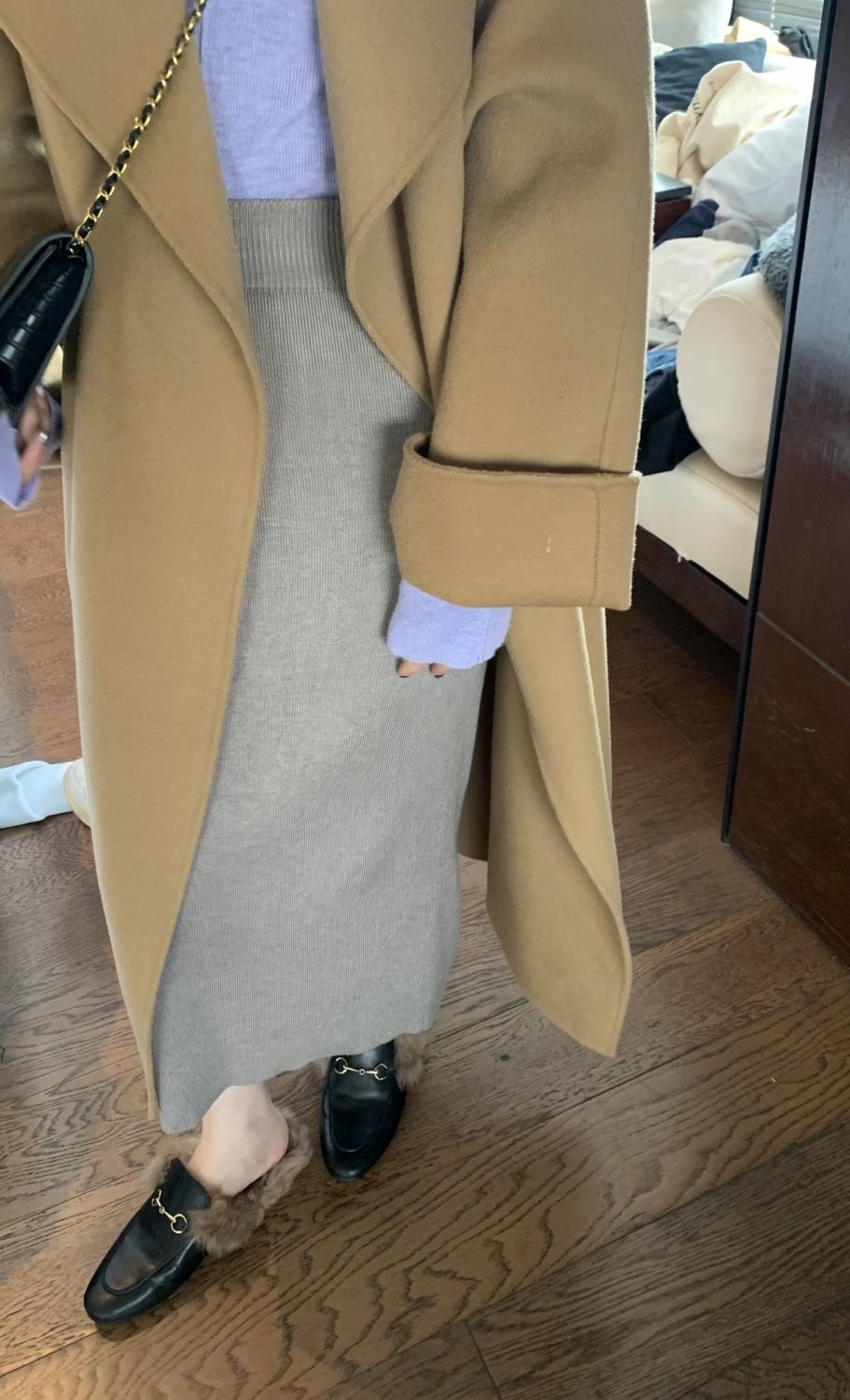 니트 스커트 가을과 겨울 중간 길이의 힙합 Unsplit 한 단계 스커트 높은 허리 양모 느슨한 두꺼운 스트레이트 스커트스토어 가기