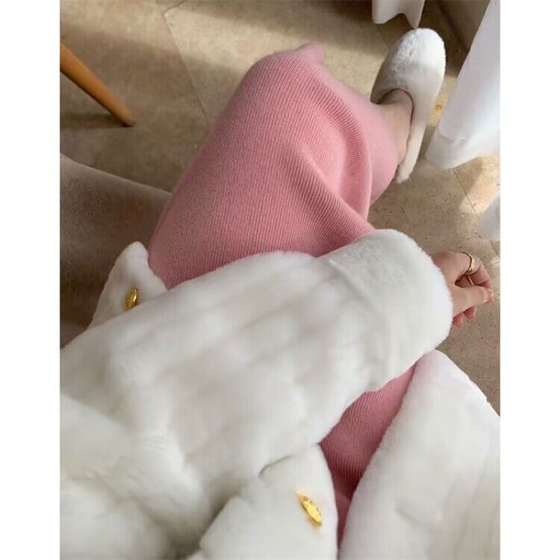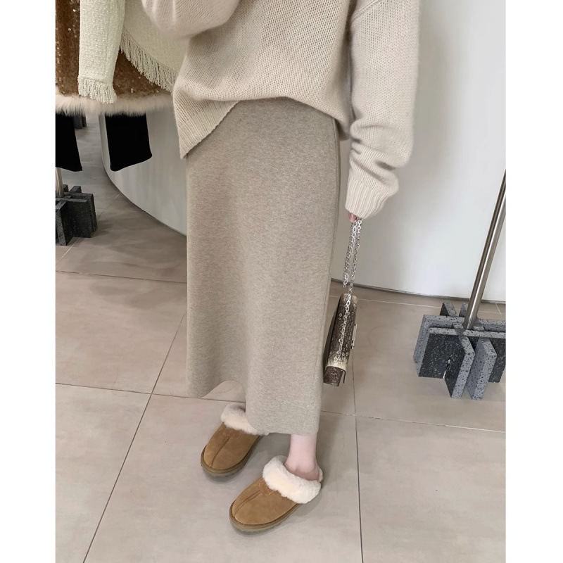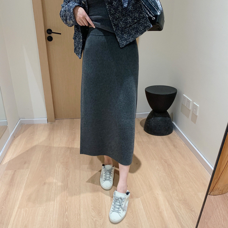 니트 스커트 가을과 겨울 중간 길이의 힙합 Unsplit 한 단계 스커트 높은 허리 양모 느슨한 두꺼운 스트레이트 스커트
