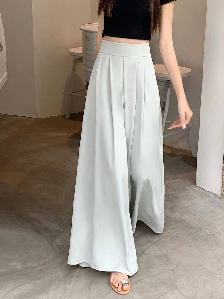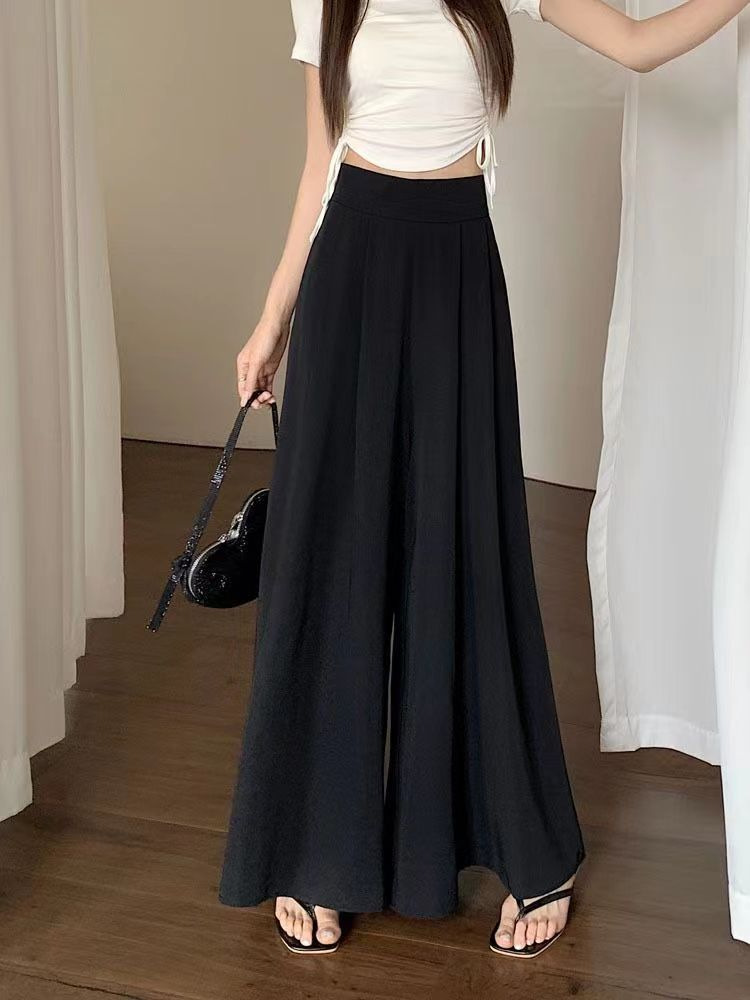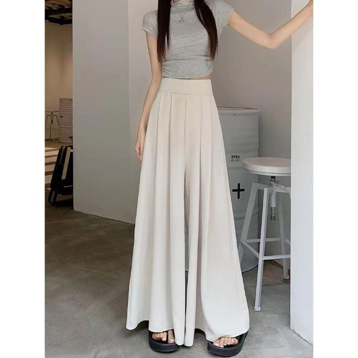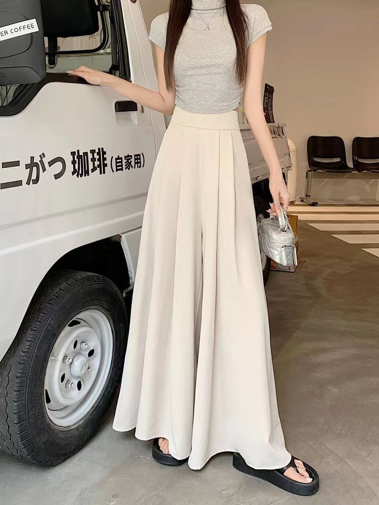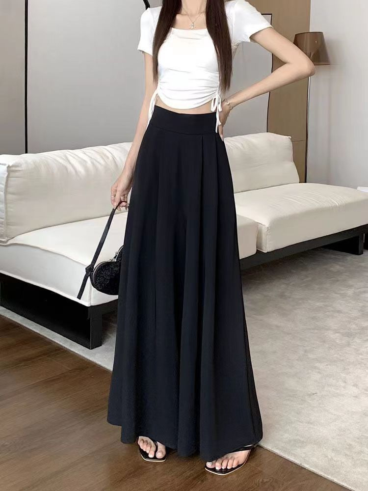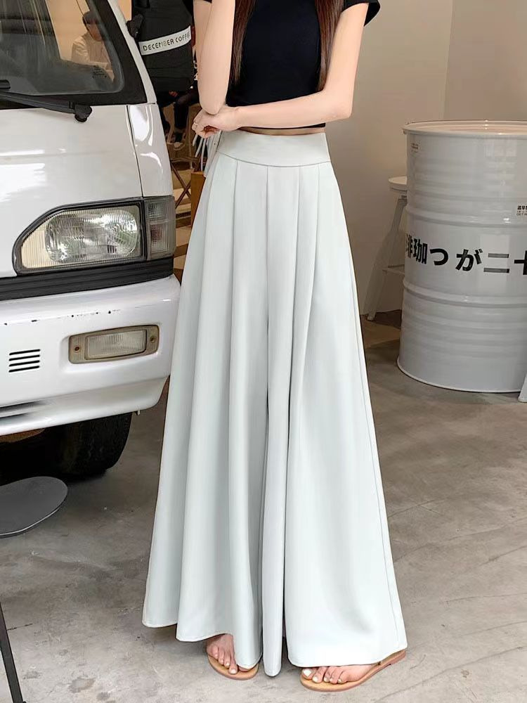 대형 스윙 넓은 다리 바지 스커트 여름 얇은 하이 엔드 허리 주름 원피스 바지 높은 허리 포장 슬림 캐주얼 바지 스커트