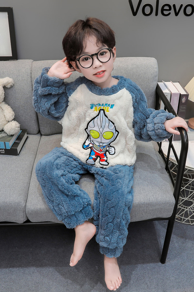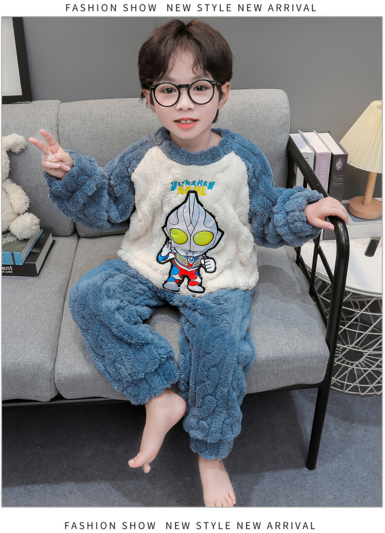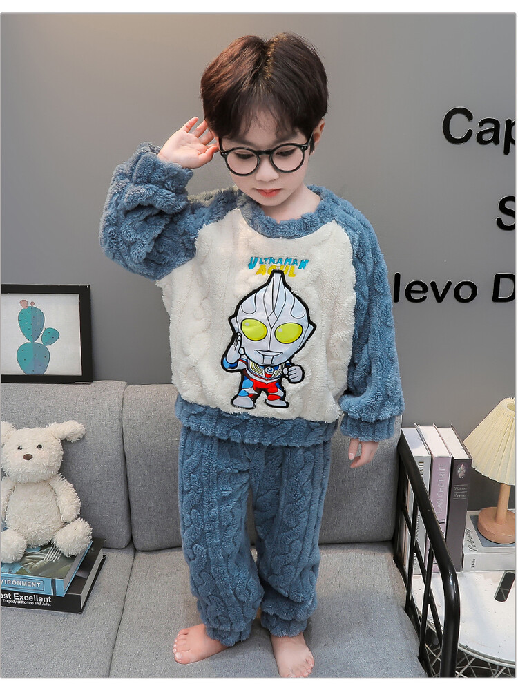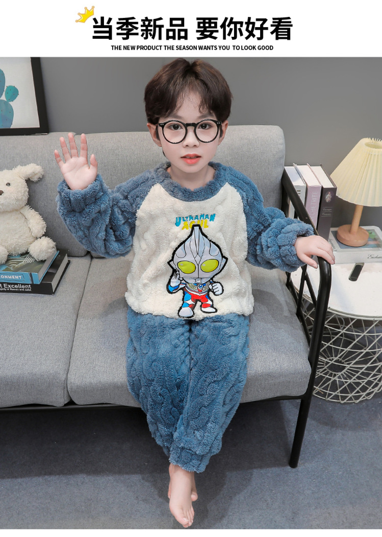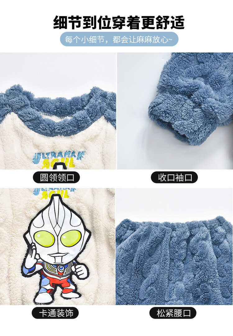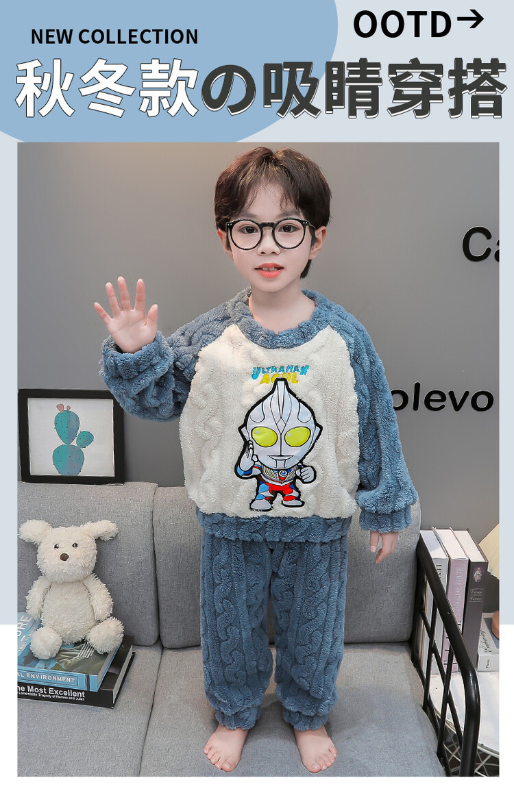 남아용 잠옷 가을 겨울 플란넬 두꺼운 산호 벨벳 2025 신상 아동 홈웨어 세트 울트라맨스토어 가기