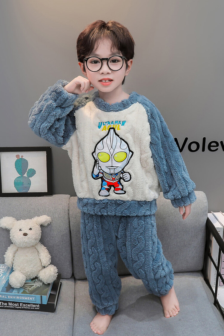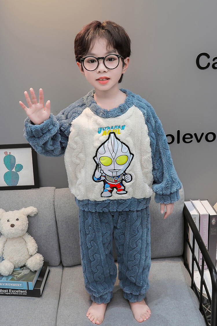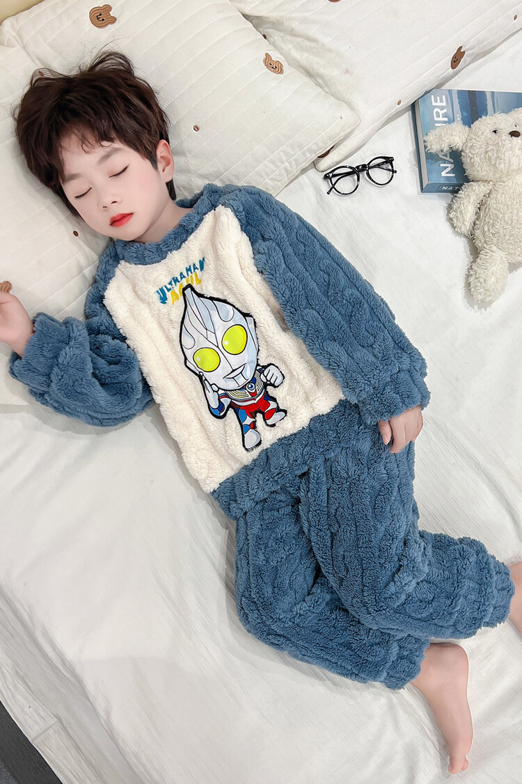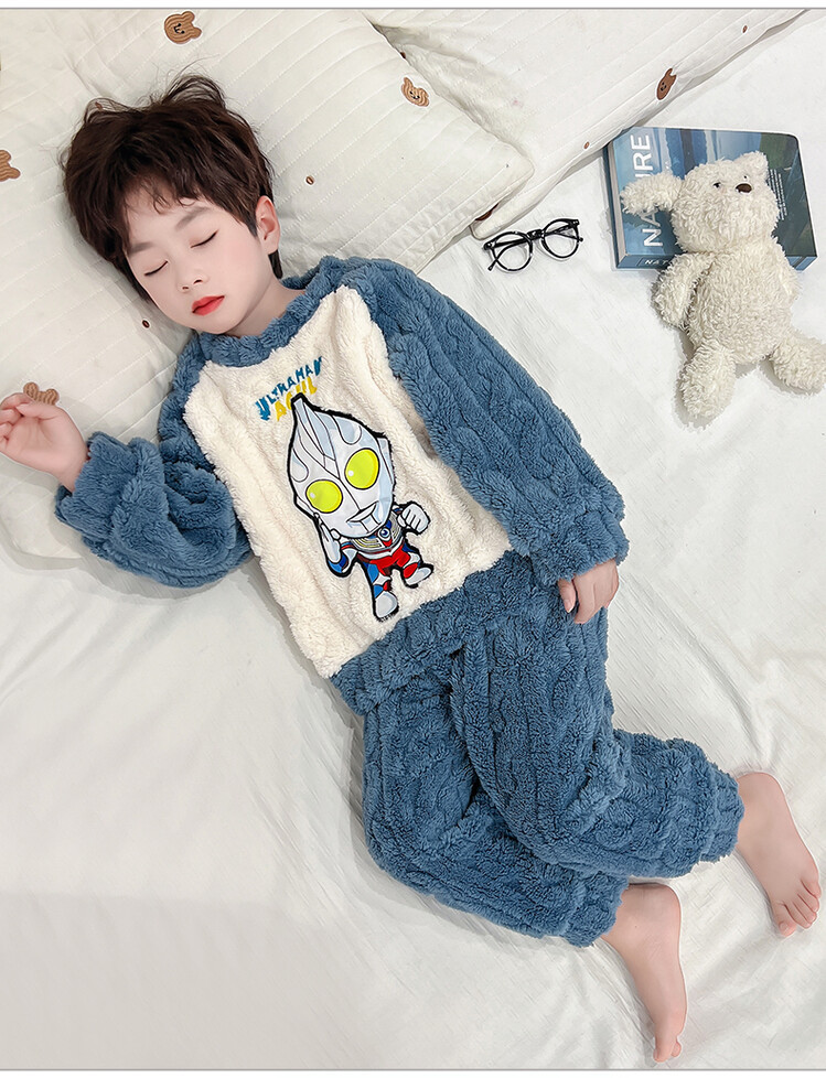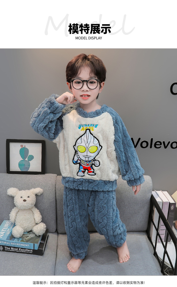 남아용 잠옷 가을 겨울 플란넬 두꺼운 산호 벨벳 2025 신상 아동 홈웨어 세트 울트라맨스토어 가기