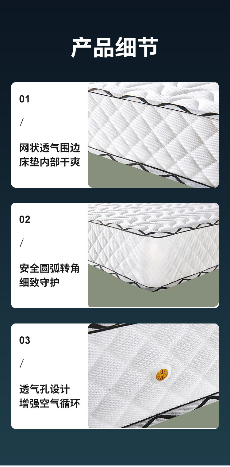• 자카드 직물 + 코코넛 야자 + 라텍스 + 스테인레스 스틸 전체 메쉬 스프링