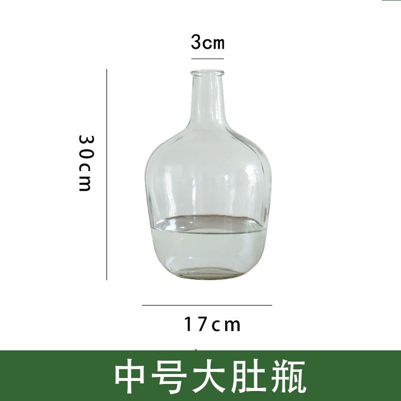 북유럽 간단한 큰 배 유리 꽃병 일본 종 말 술 취한 나무 꽃-수경 바닥 투명 대형 장식 작은 입