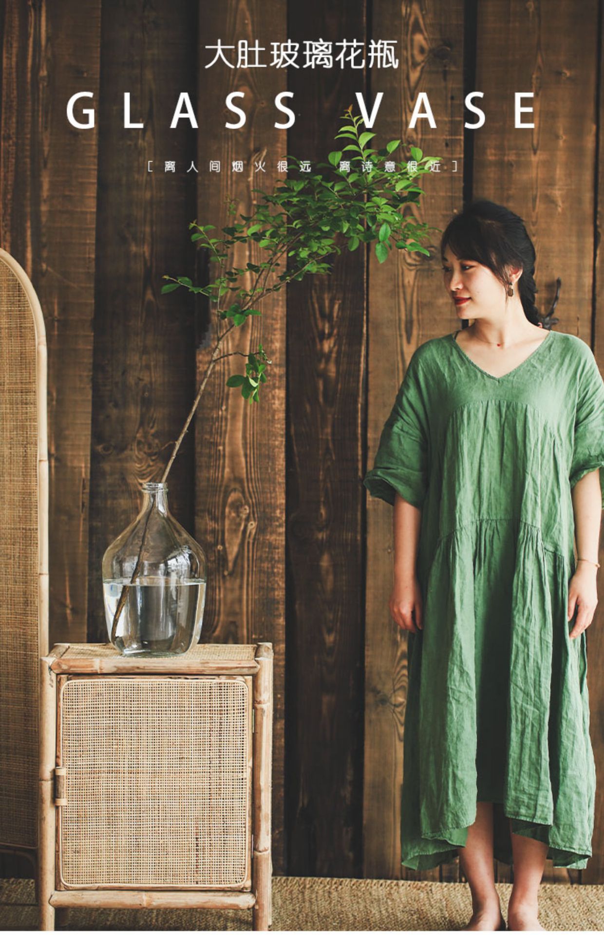 북유럽 간단한 큰 배 유리 꽃병 일본 종 말 술 취한 나무 꽃-수경 바닥 투명 대형 장식 작은 입스토어 가기