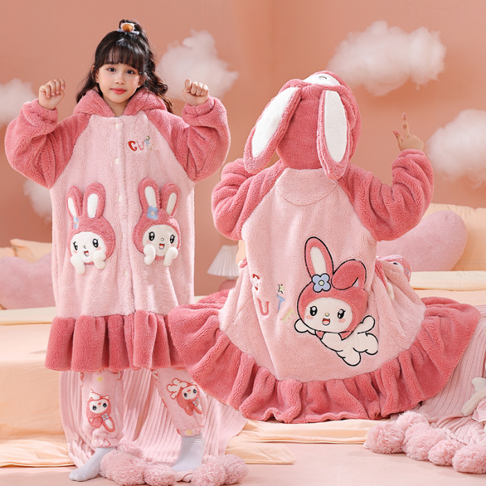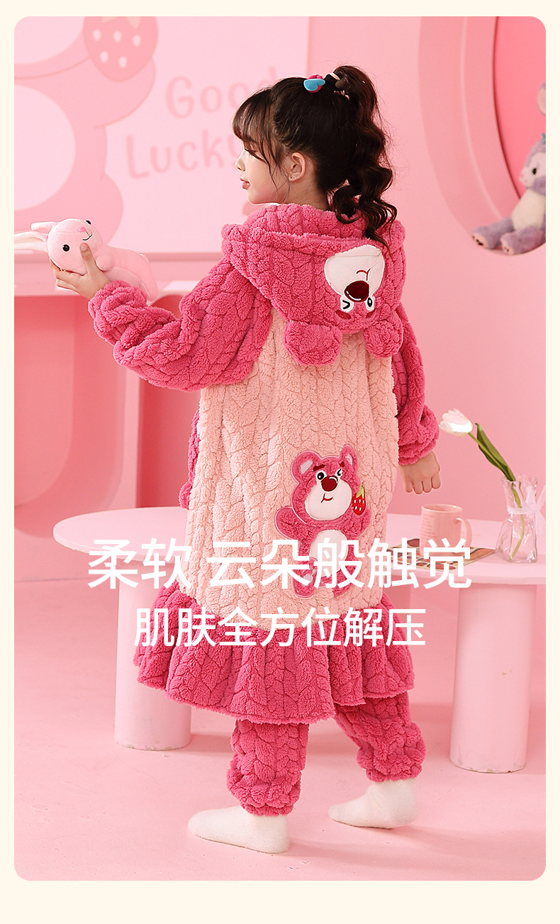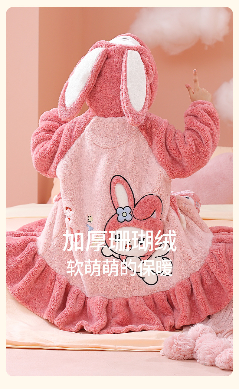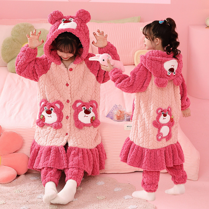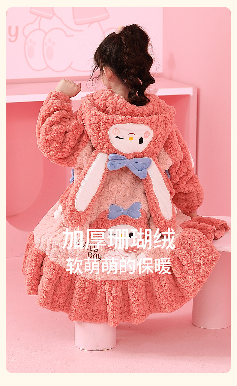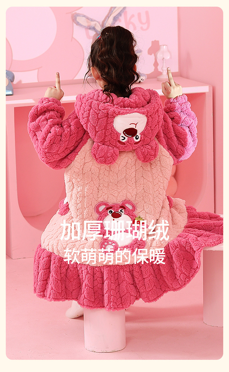 소녀 플란넬 잠옷 어린이 잠옷 가을과 겨울 두꺼운 산호 양털 소녀 긴 후드 목욕 가운 홈 옷