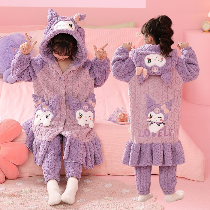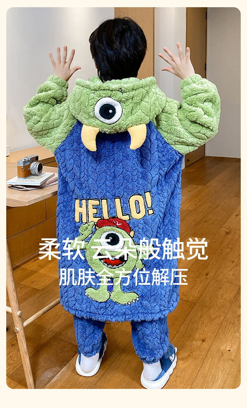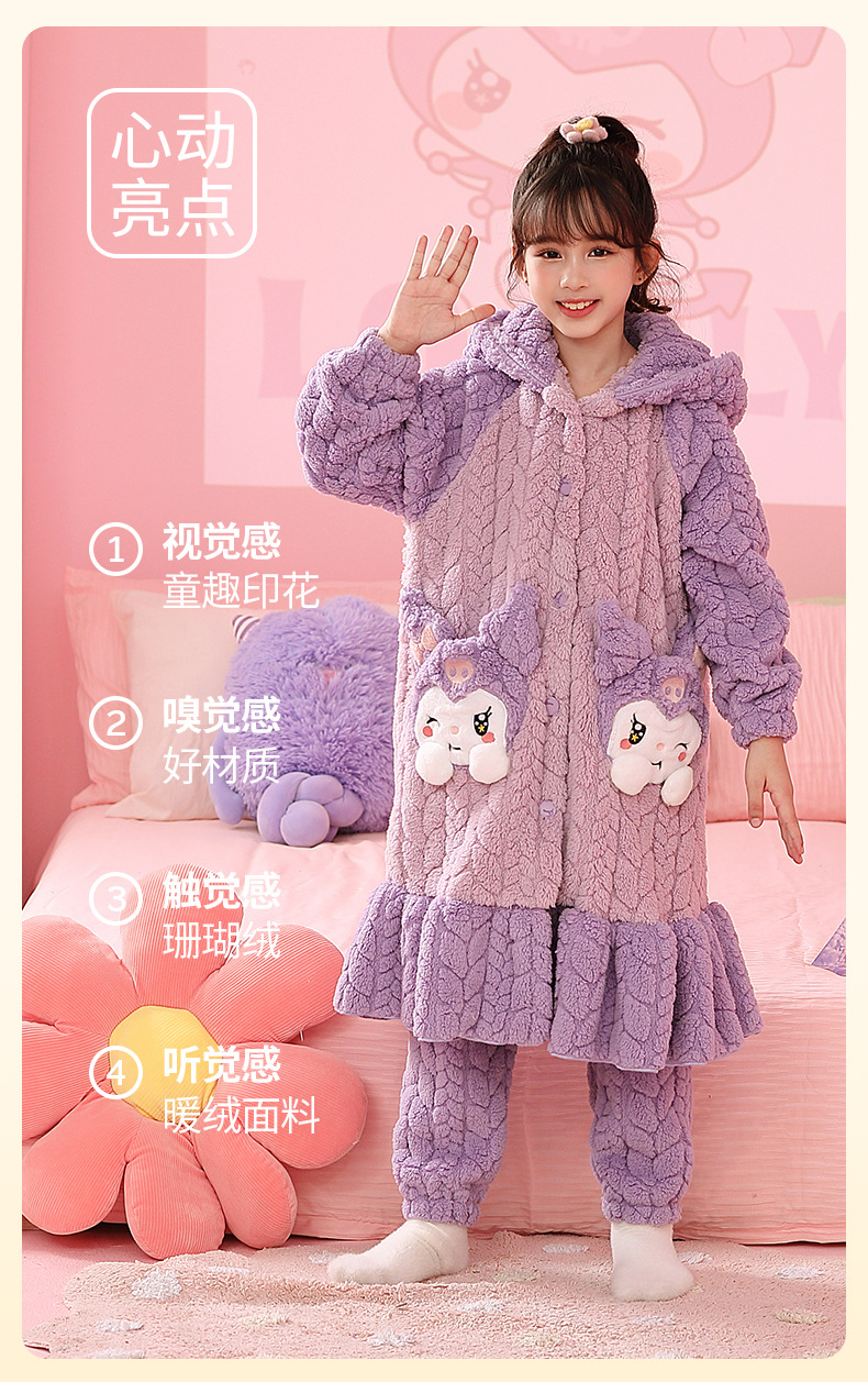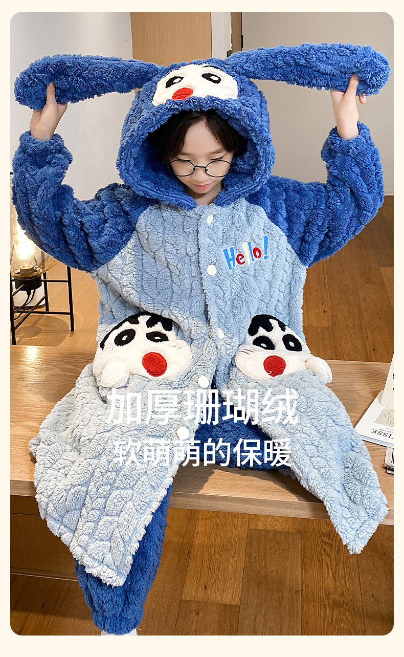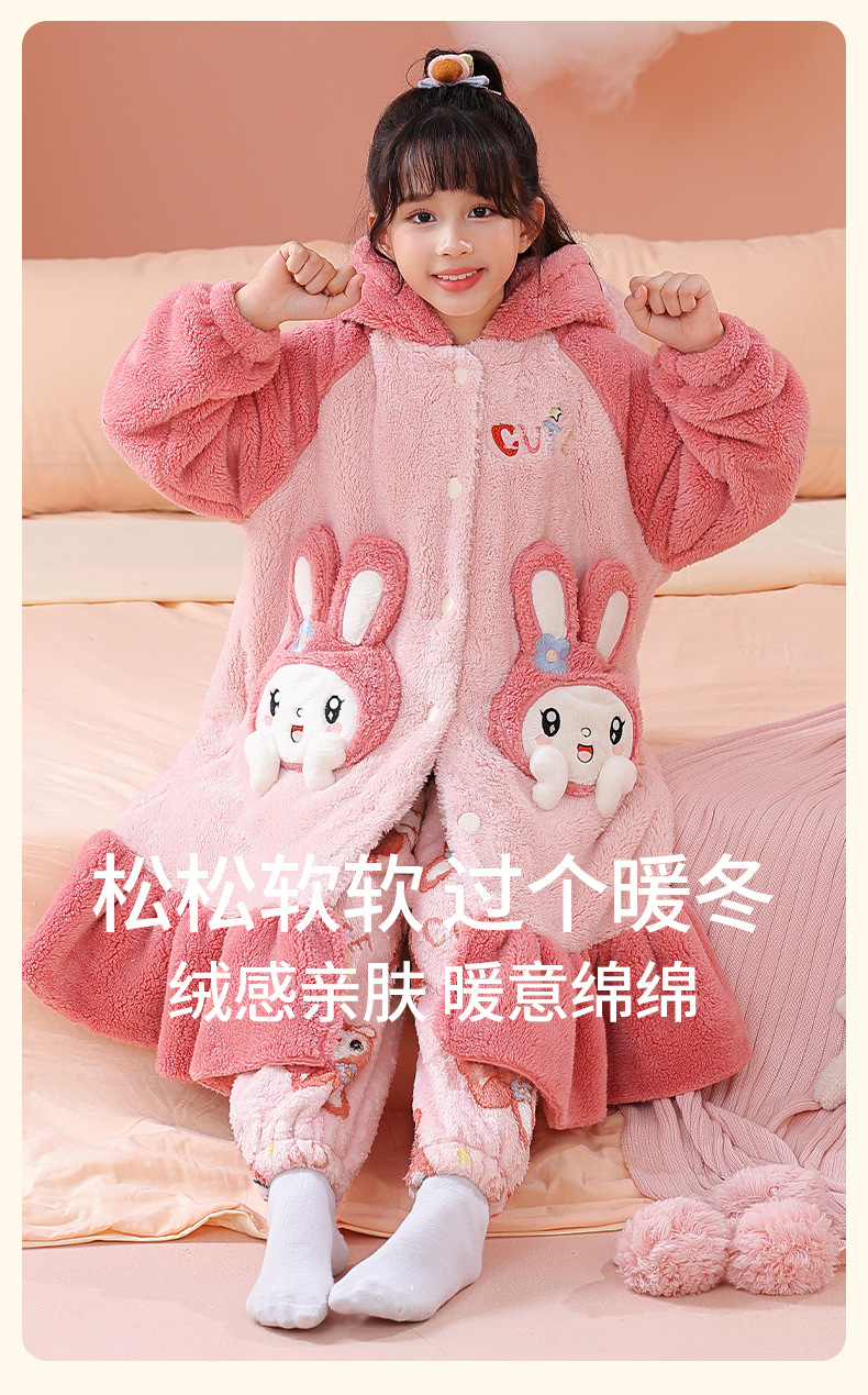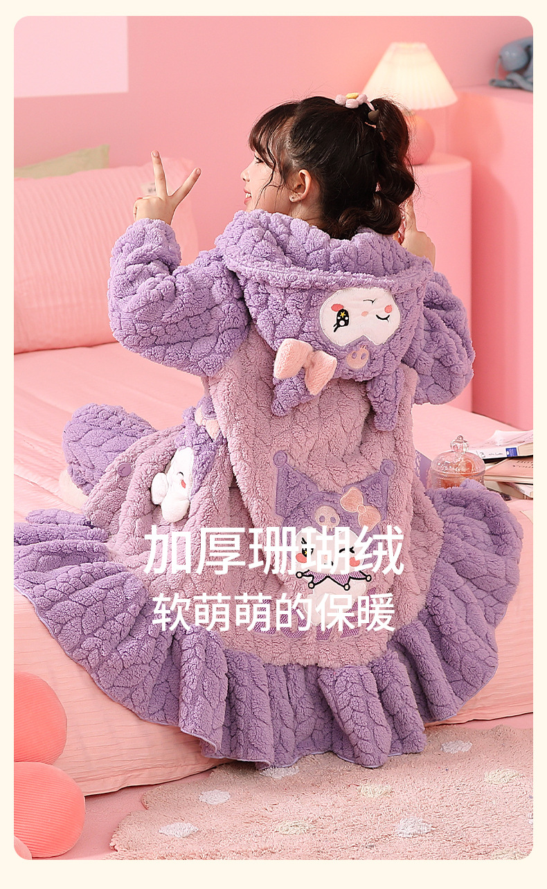 소녀 플란넬 잠옷 어린이 잠옷 가을과 겨울 두꺼운 산호 양털 소녀 긴 후드 목욕 가운 홈 옷