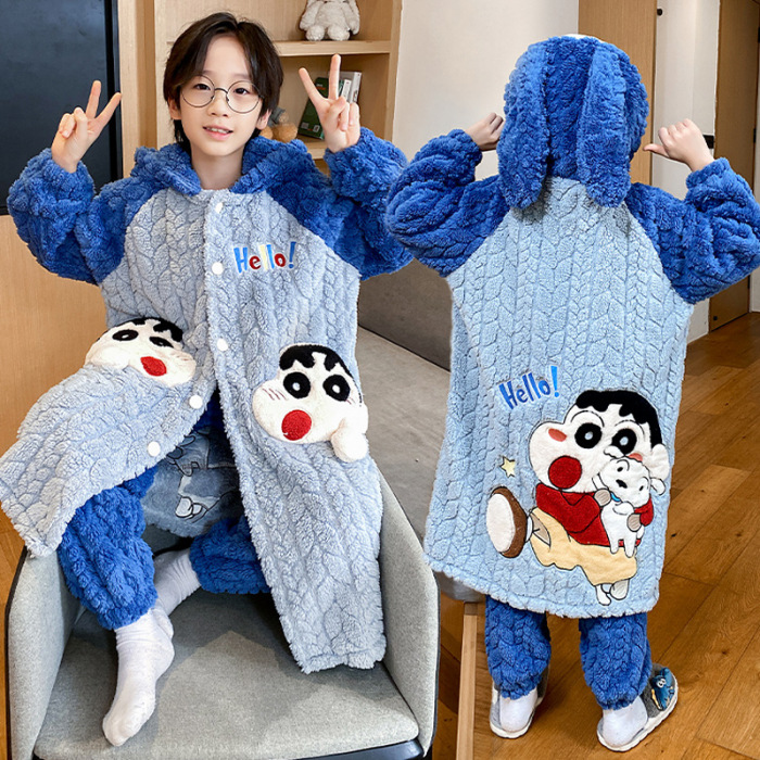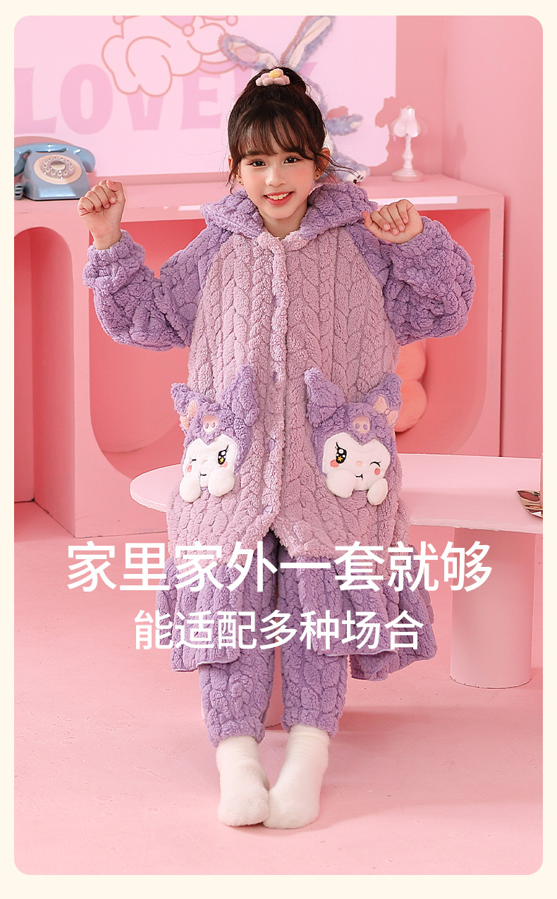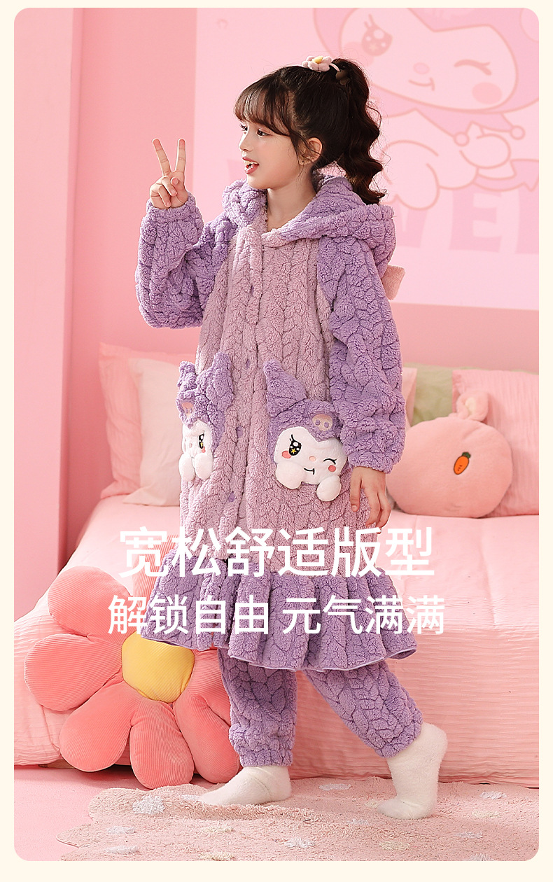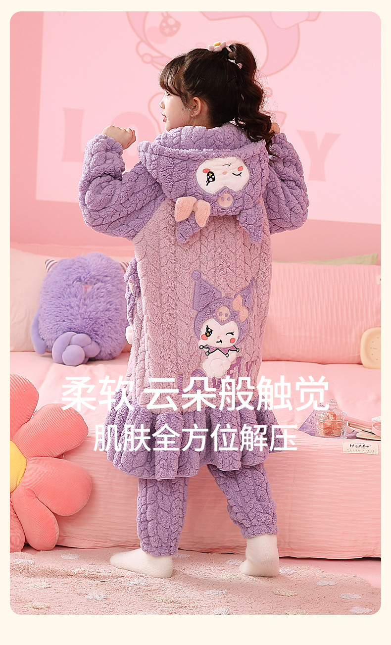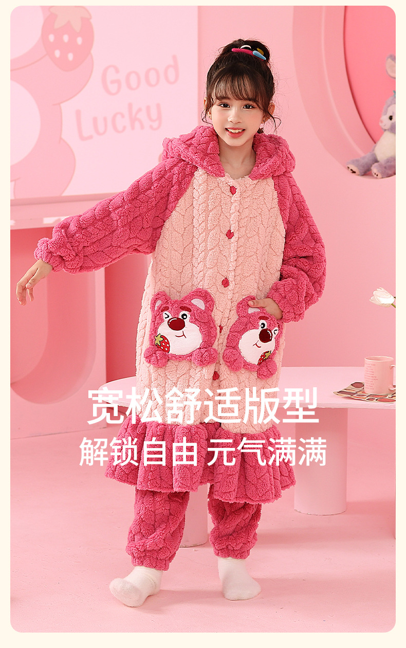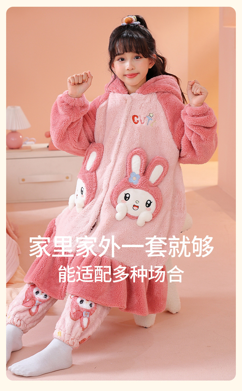 소녀 플란넬 잠옷 어린이 잠옷 가을과 겨울 두꺼운 산호 양털 소녀 긴 후드 목욕 가운 홈 옷