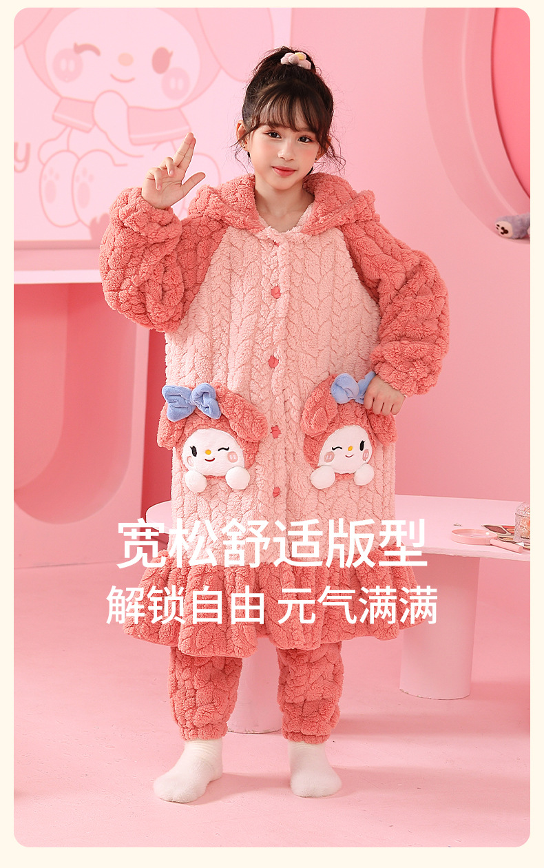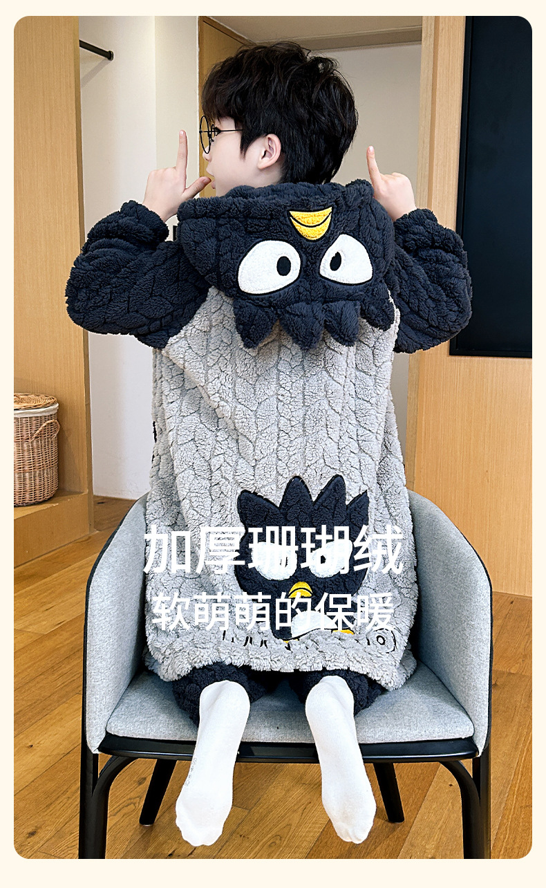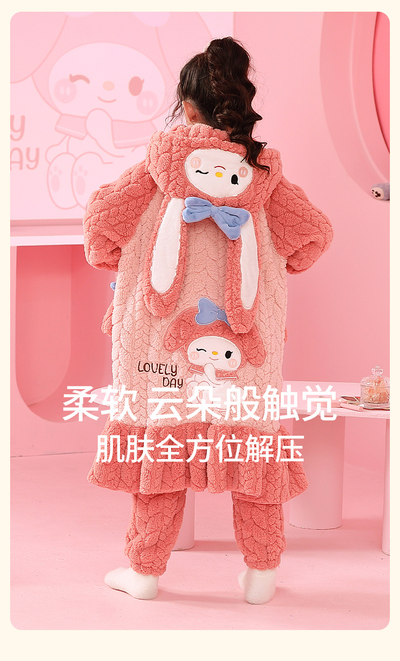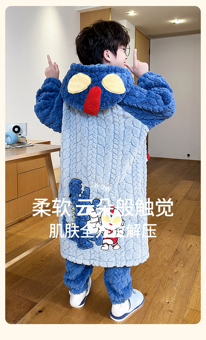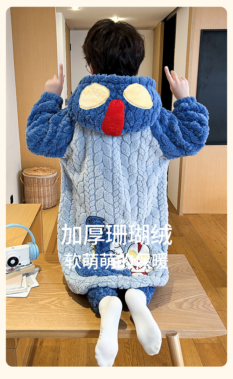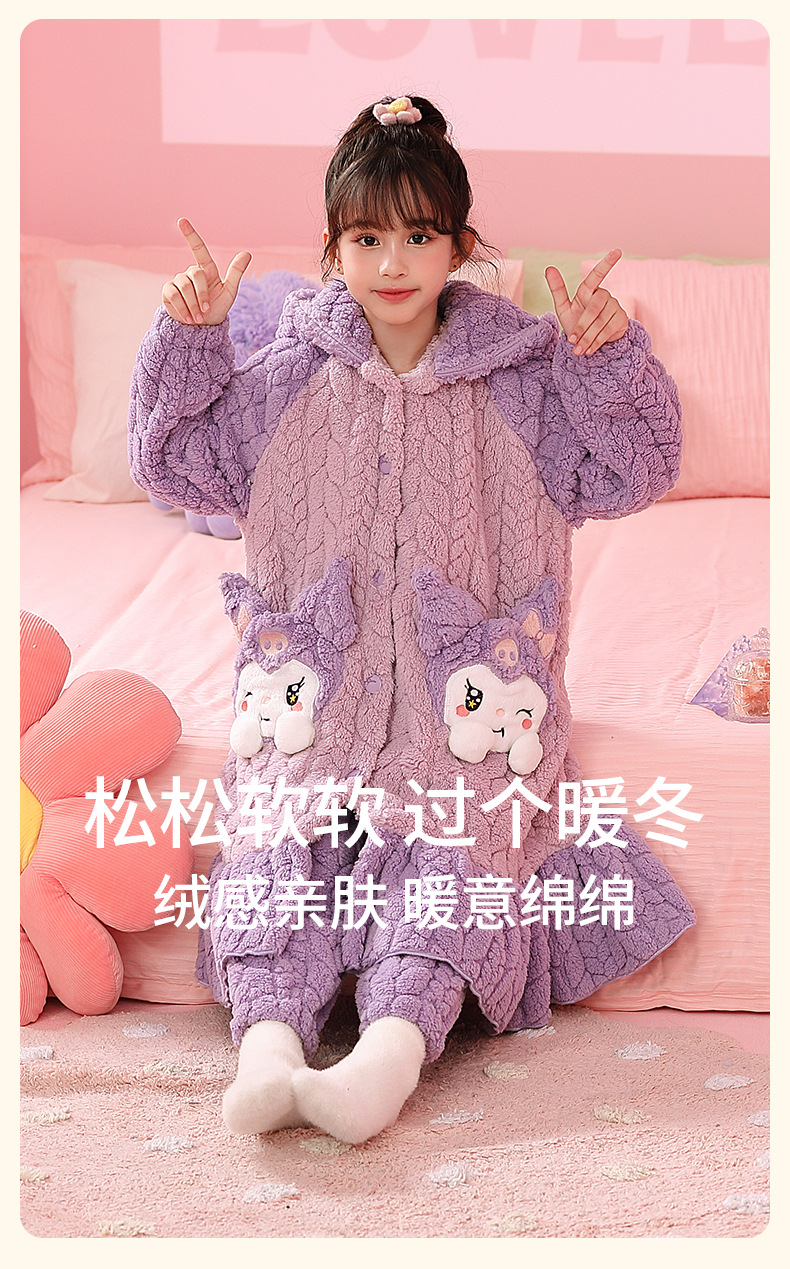 소녀 플란넬 잠옷 어린이 잠옷 가을과 겨울 두꺼운 산호 양털 소녀 긴 후드 목욕 가운 홈 옷