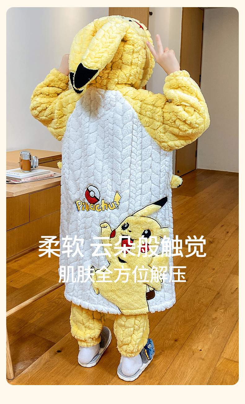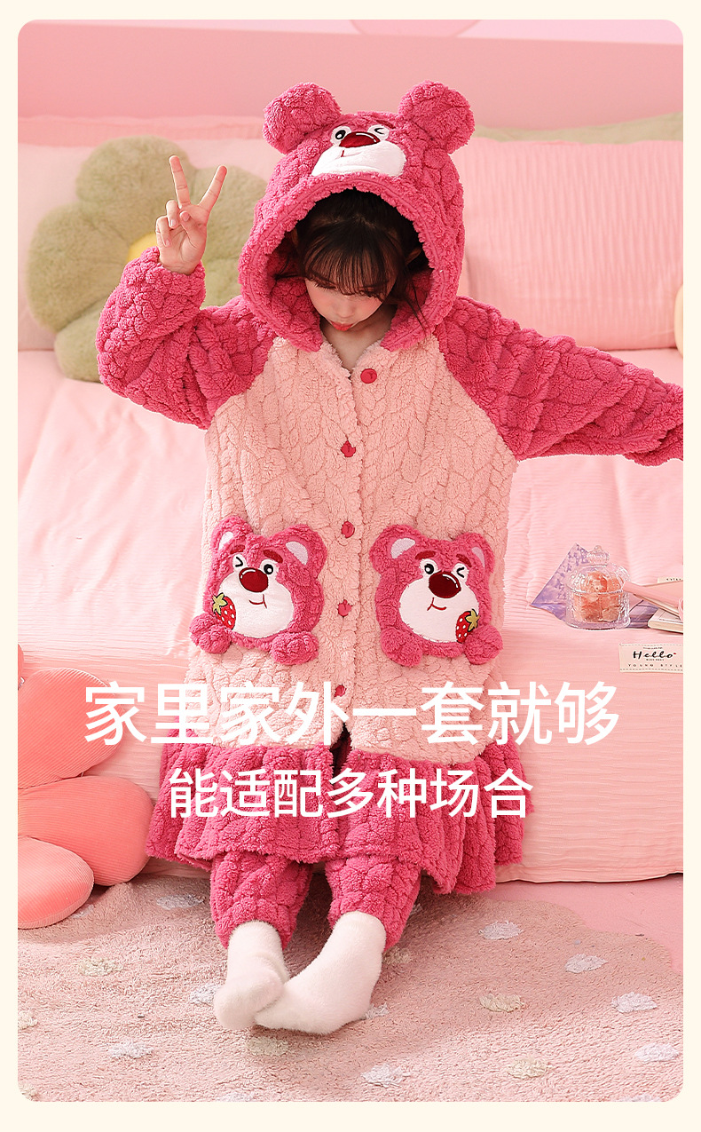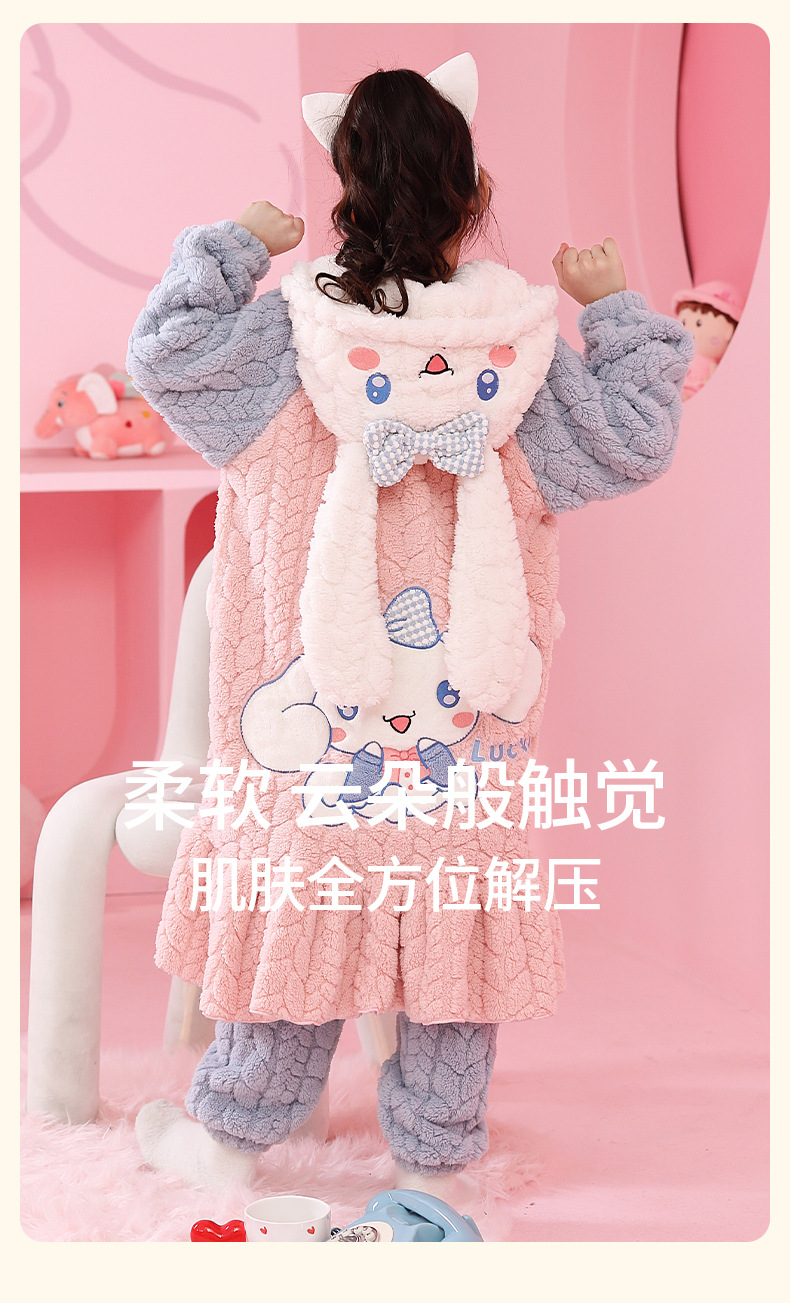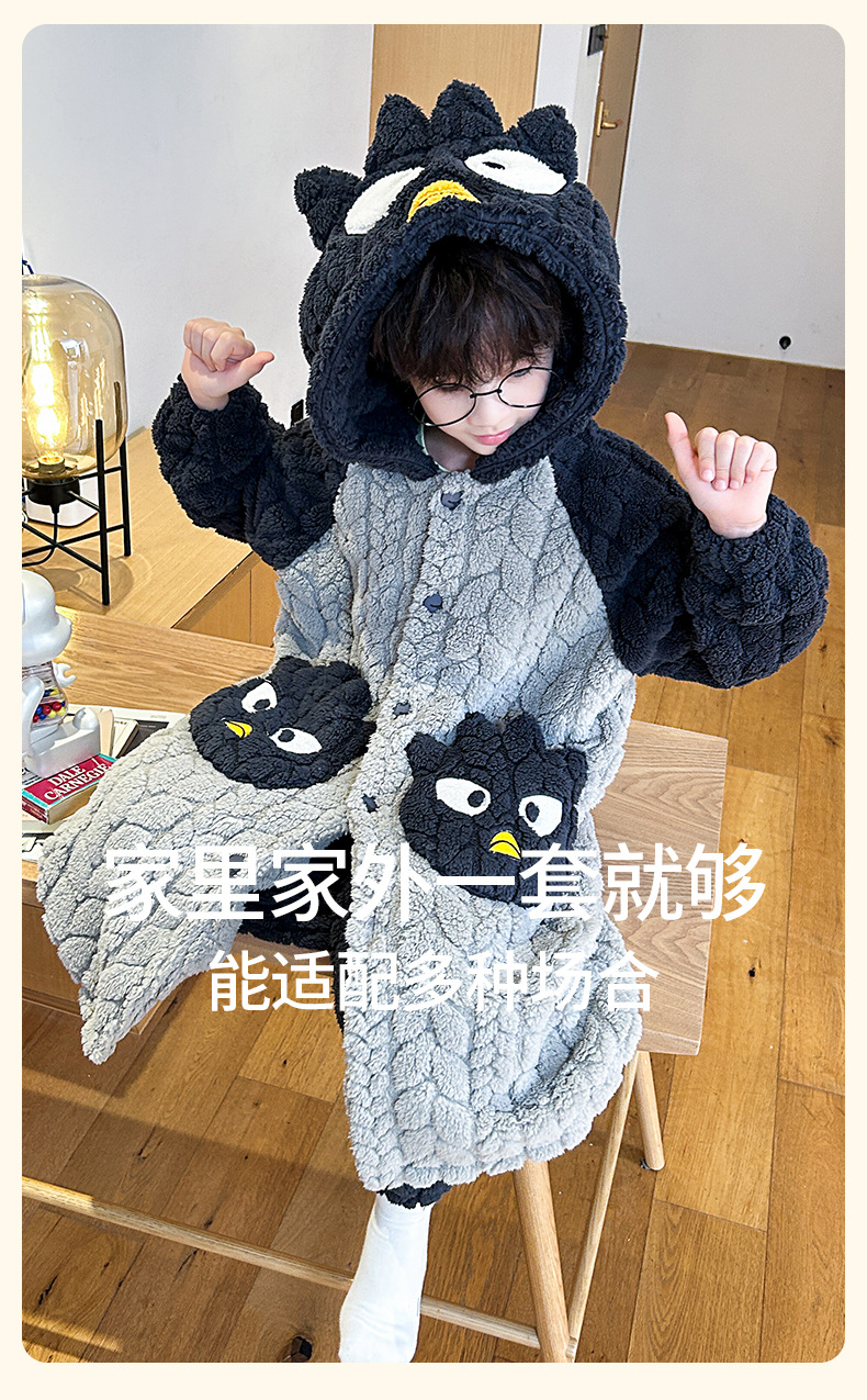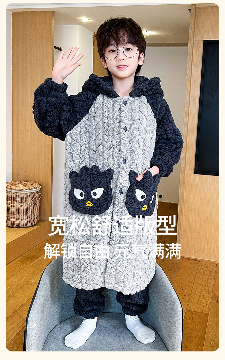 소녀 플란넬 잠옷 어린이 잠옷 가을과 겨울 두꺼운 산호 양털 소녀 긴 후드 목욕 가운 홈 옷