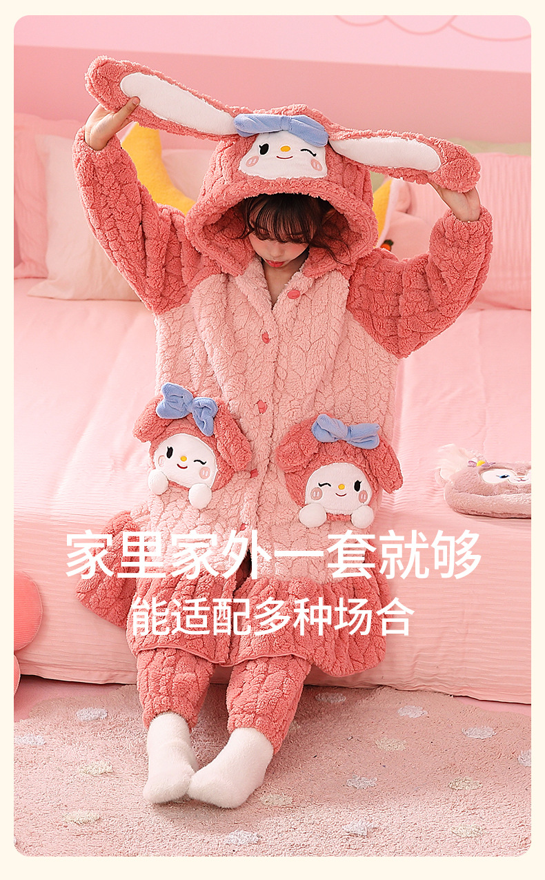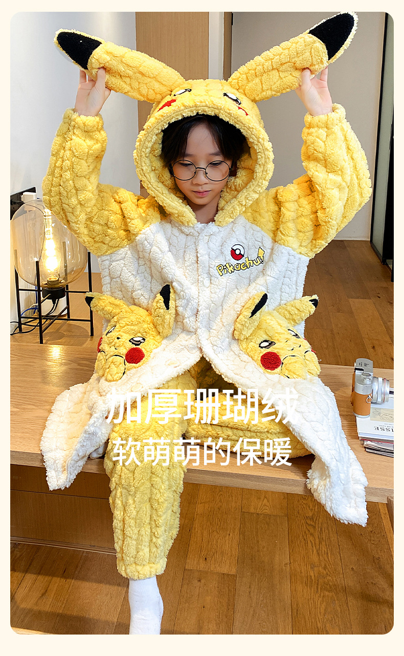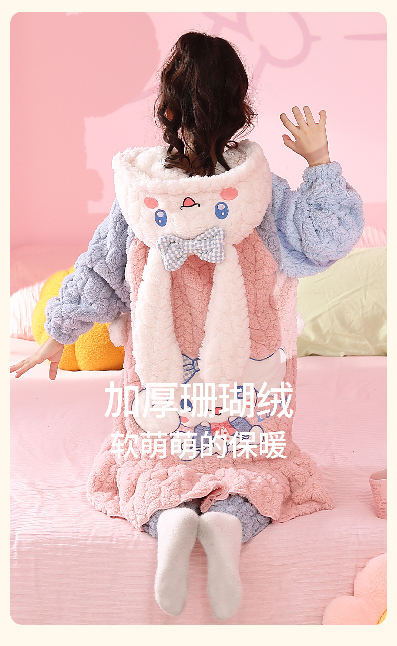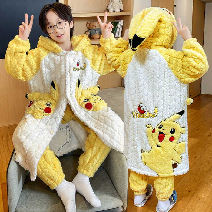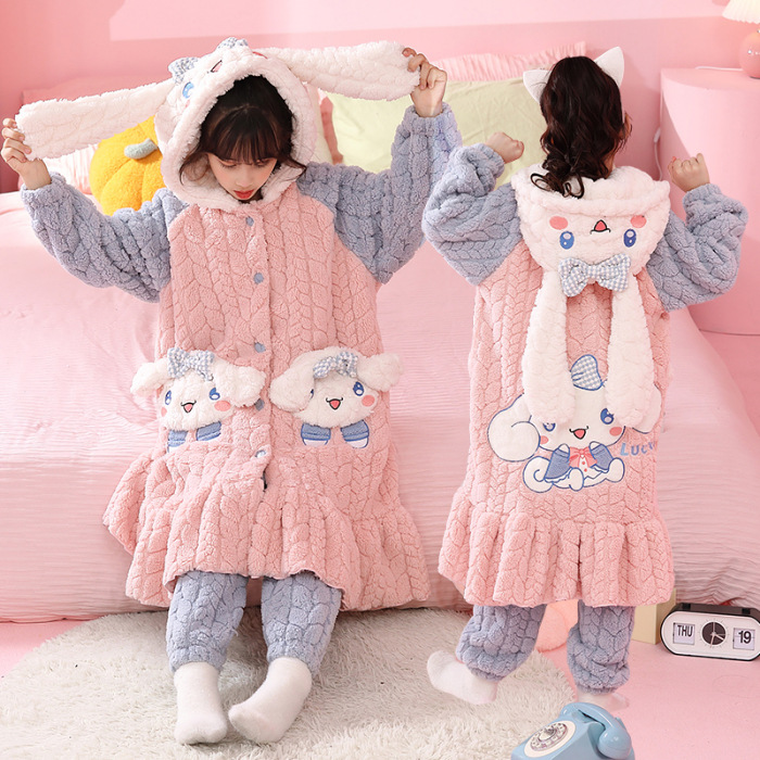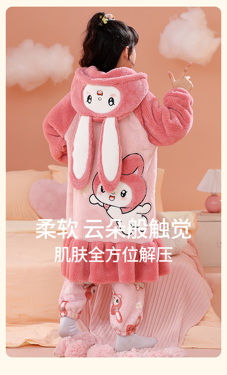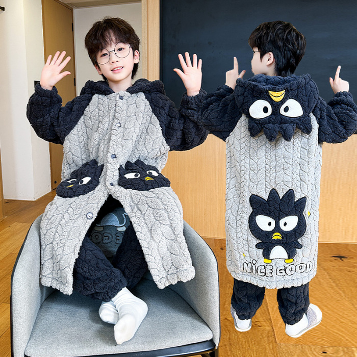 소녀 플란넬 잠옷 어린이 잠옷 가을과 겨울 두꺼운 산호 양털 소녀 긴 후드 목욕 가운 홈 옷