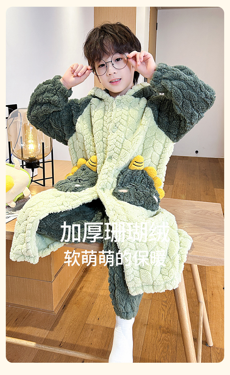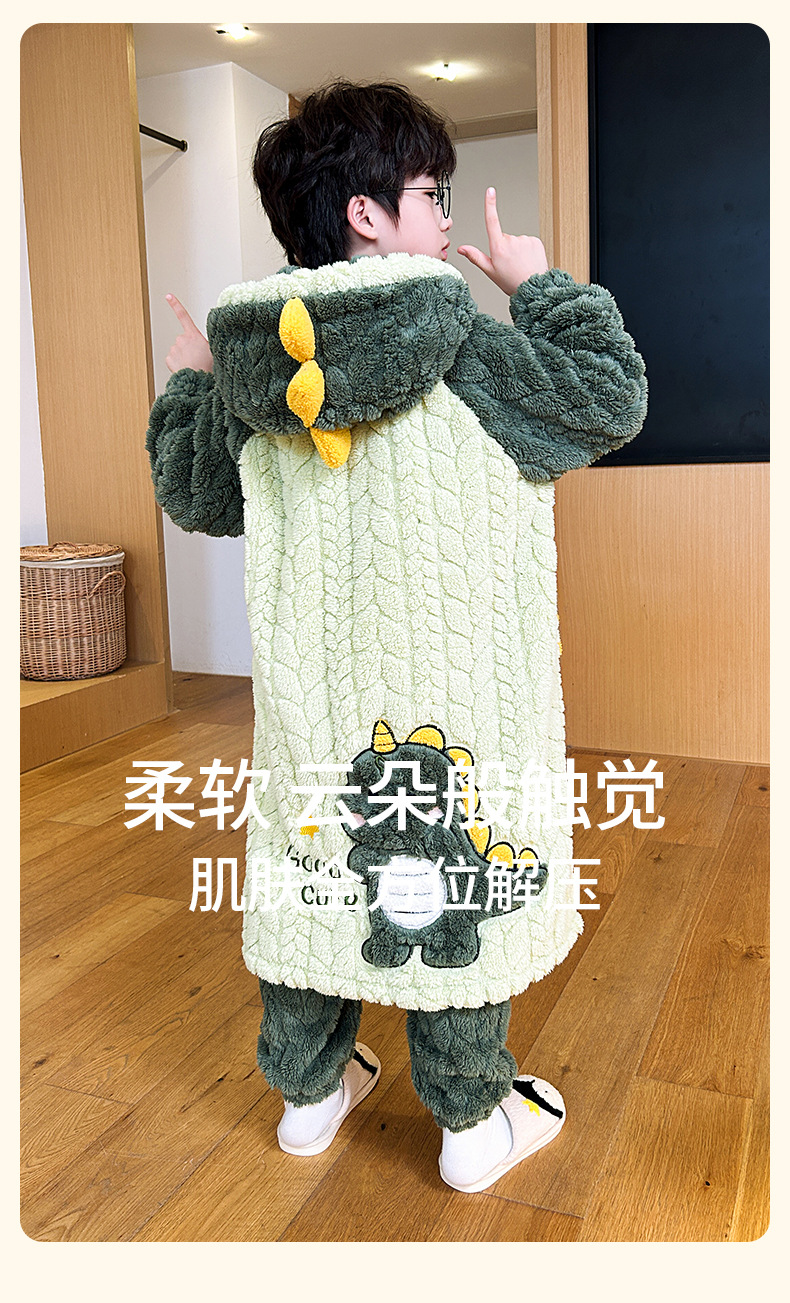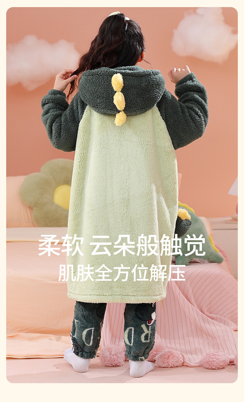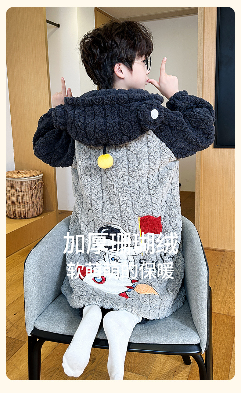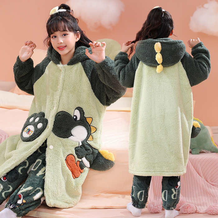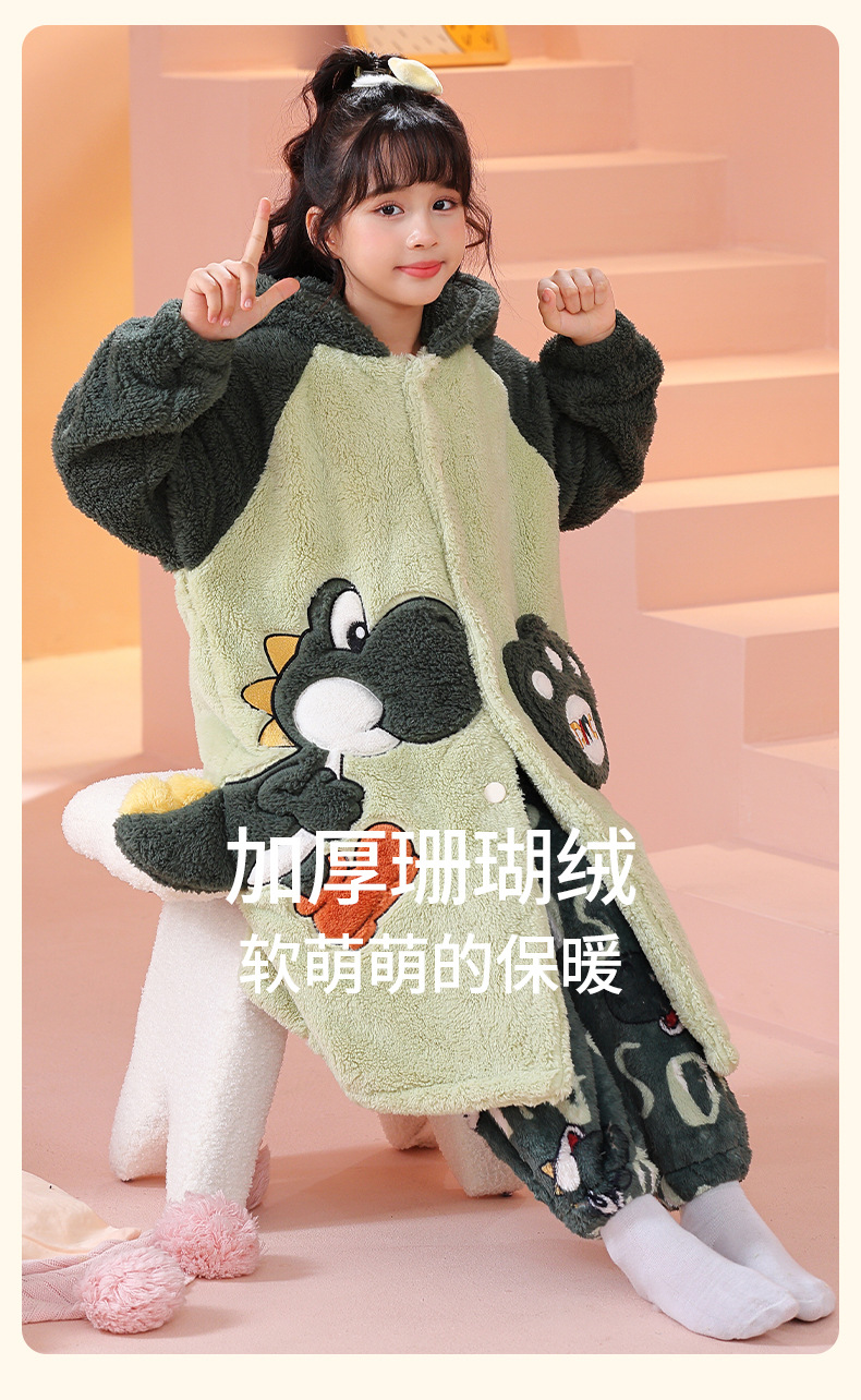 소녀 플란넬 잠옷 어린이 잠옷 가을과 겨울 두꺼운 산호 양털 소녀 긴 후드 목욕 가운 홈 옷스토어 가기