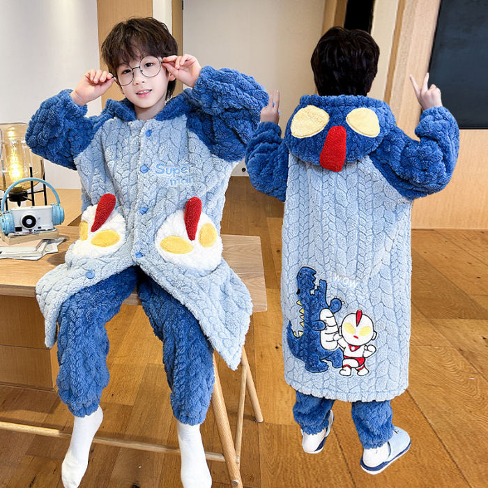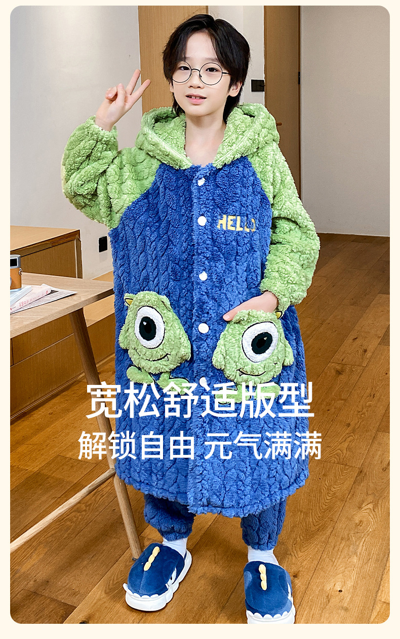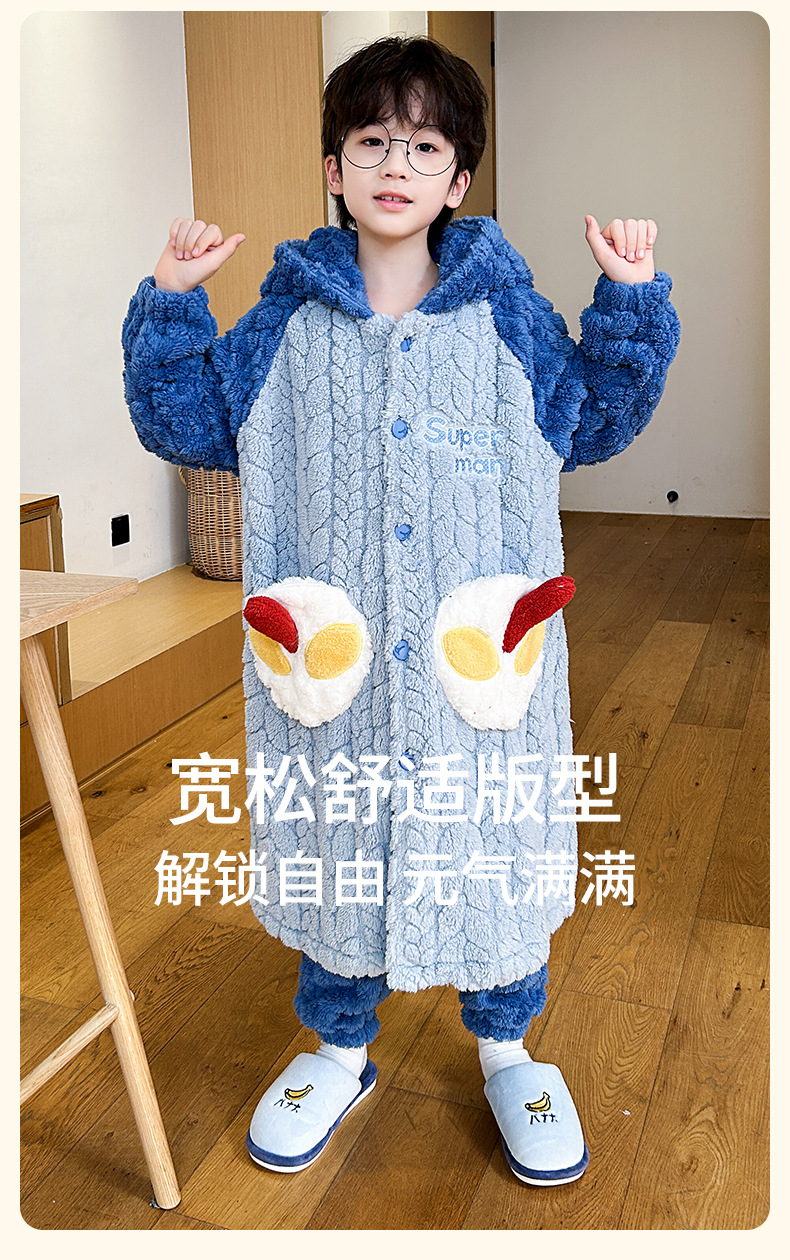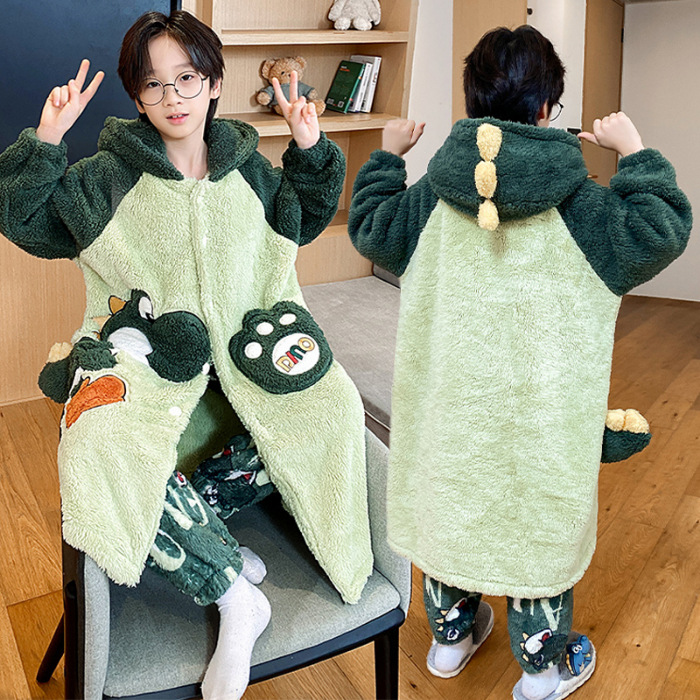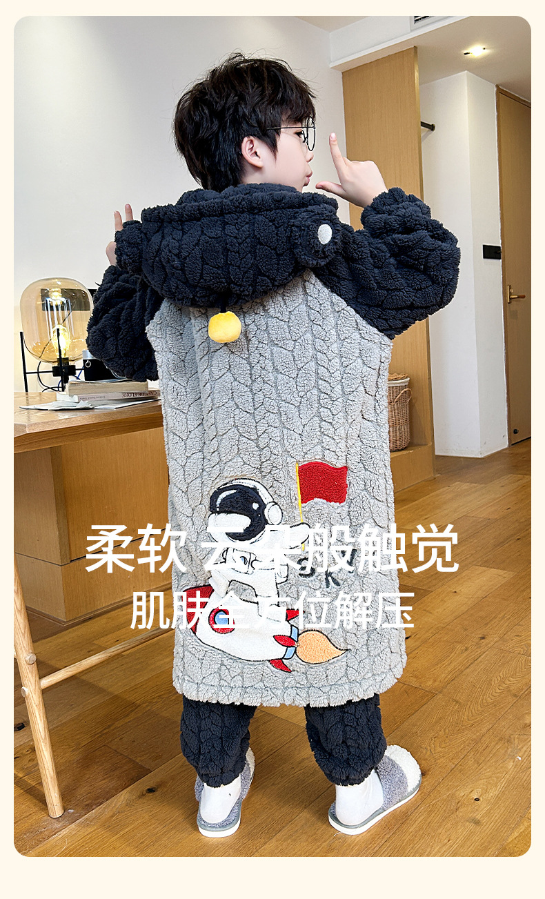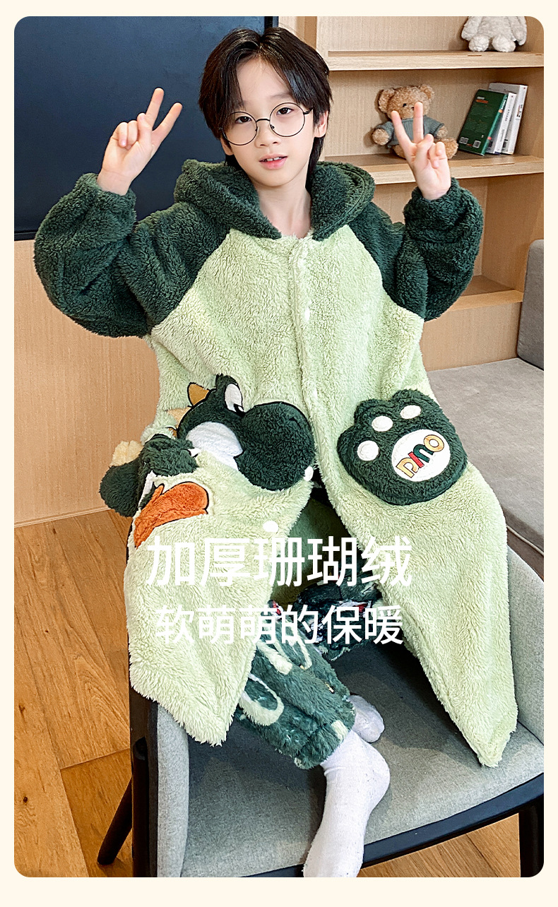 소녀 플란넬 잠옷 어린이 잠옷 가을과 겨울 두꺼운 산호 양털 소녀 긴 후드 목욕 가운 홈 옷스토어 가기