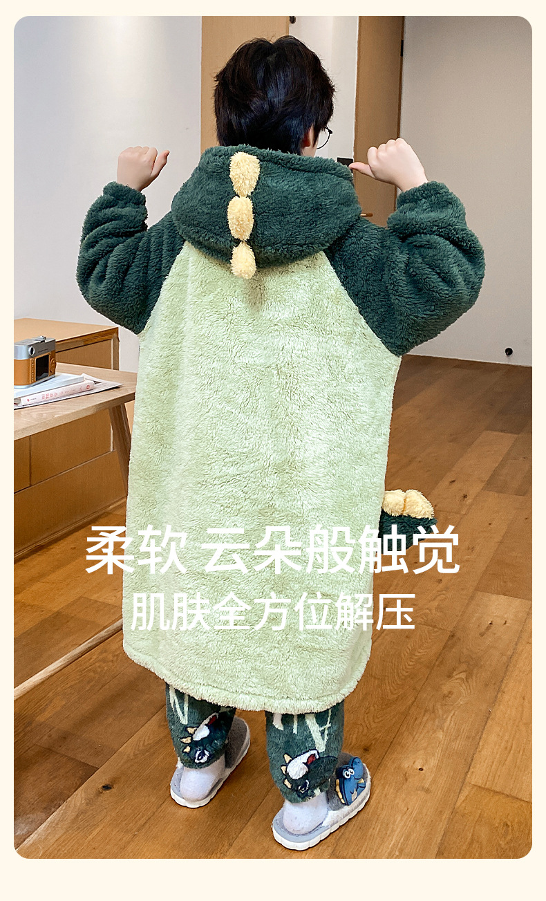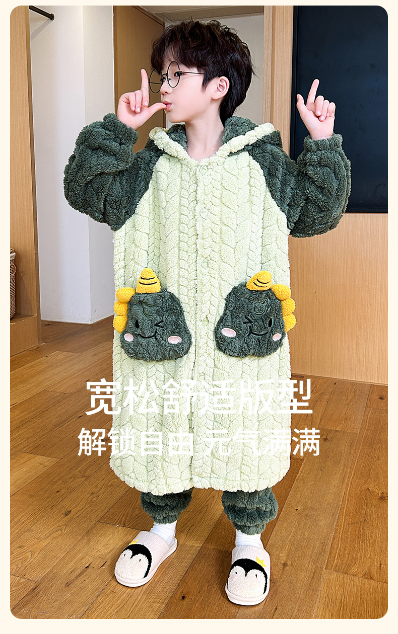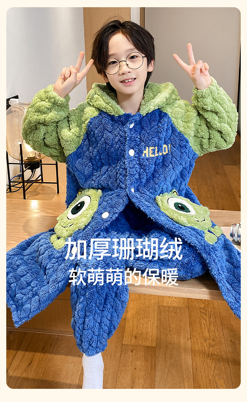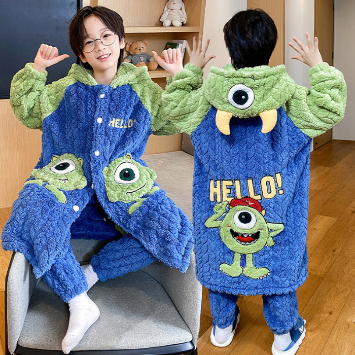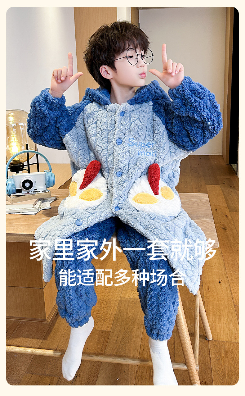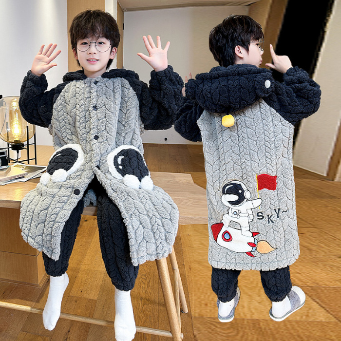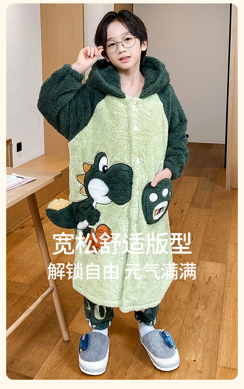 소녀 플란넬 잠옷 어린이 잠옷 가을과 겨울 두꺼운 산호 양털 소녀 긴 후드 목욕 가운 홈 옷스토어 가기