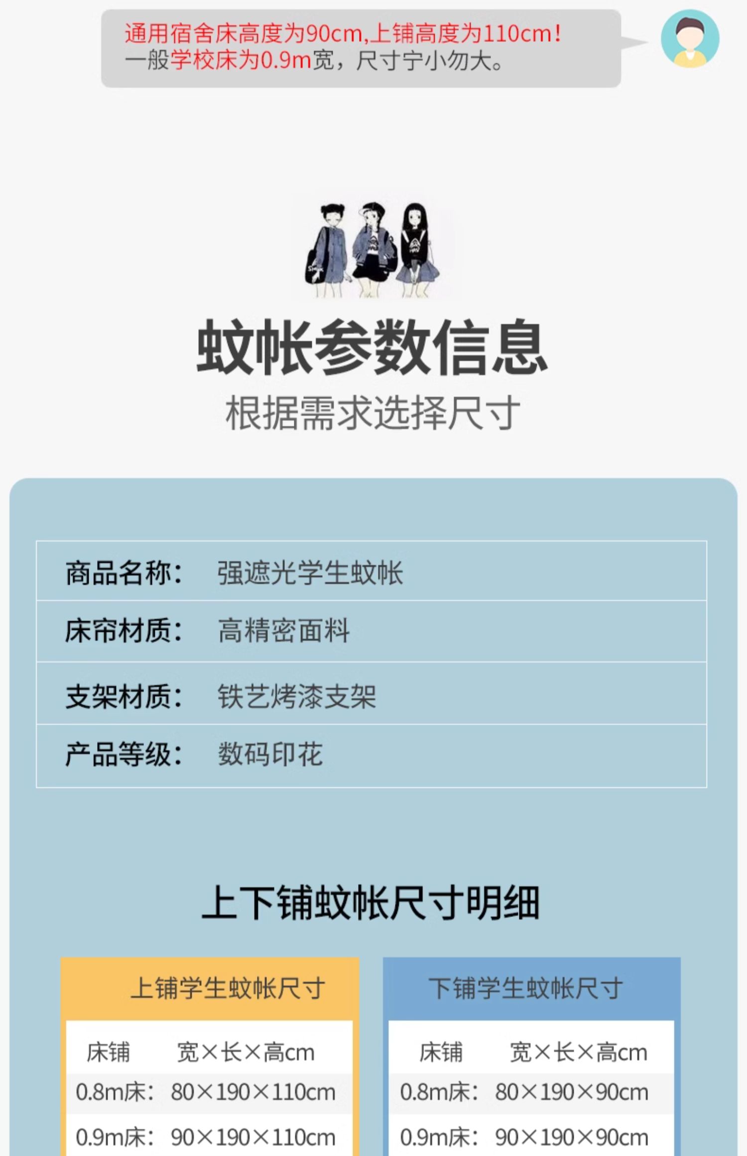 • 완전 개폐식 페인트 브래킷: 0.8-0.9m 침대 [이층 침대용 범용] 폭 80~90, 길이 180~190 높이 90~110