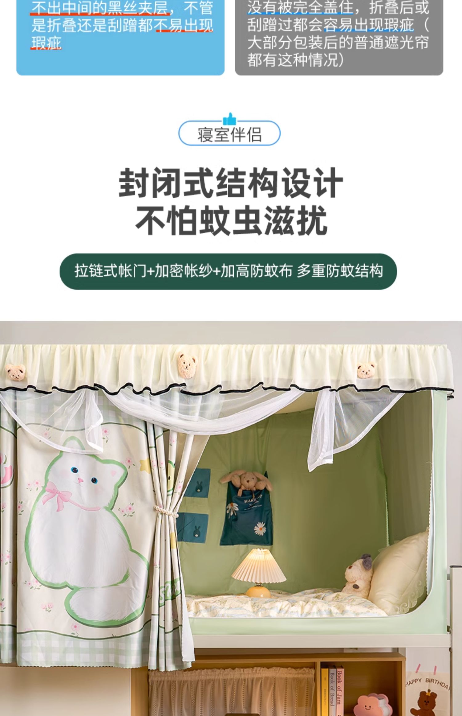 그늘진 대학생 기숙사 특별 모든 것을 포함하는 폐쇄 비 코팅 모기장 침대 커튼 통합 침실 상하 Bds 유니버설