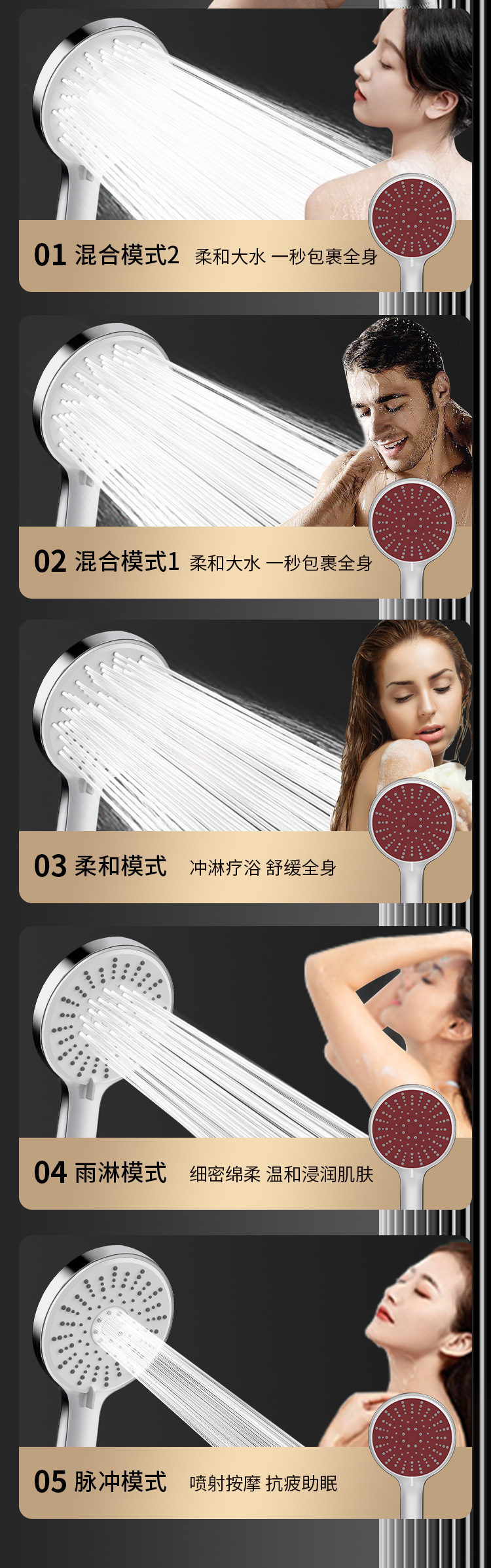 대형 패널 샤워 헤드 가압 5 단 대형 물 콘센트 욕실 온수기 샤워 헤드 세트