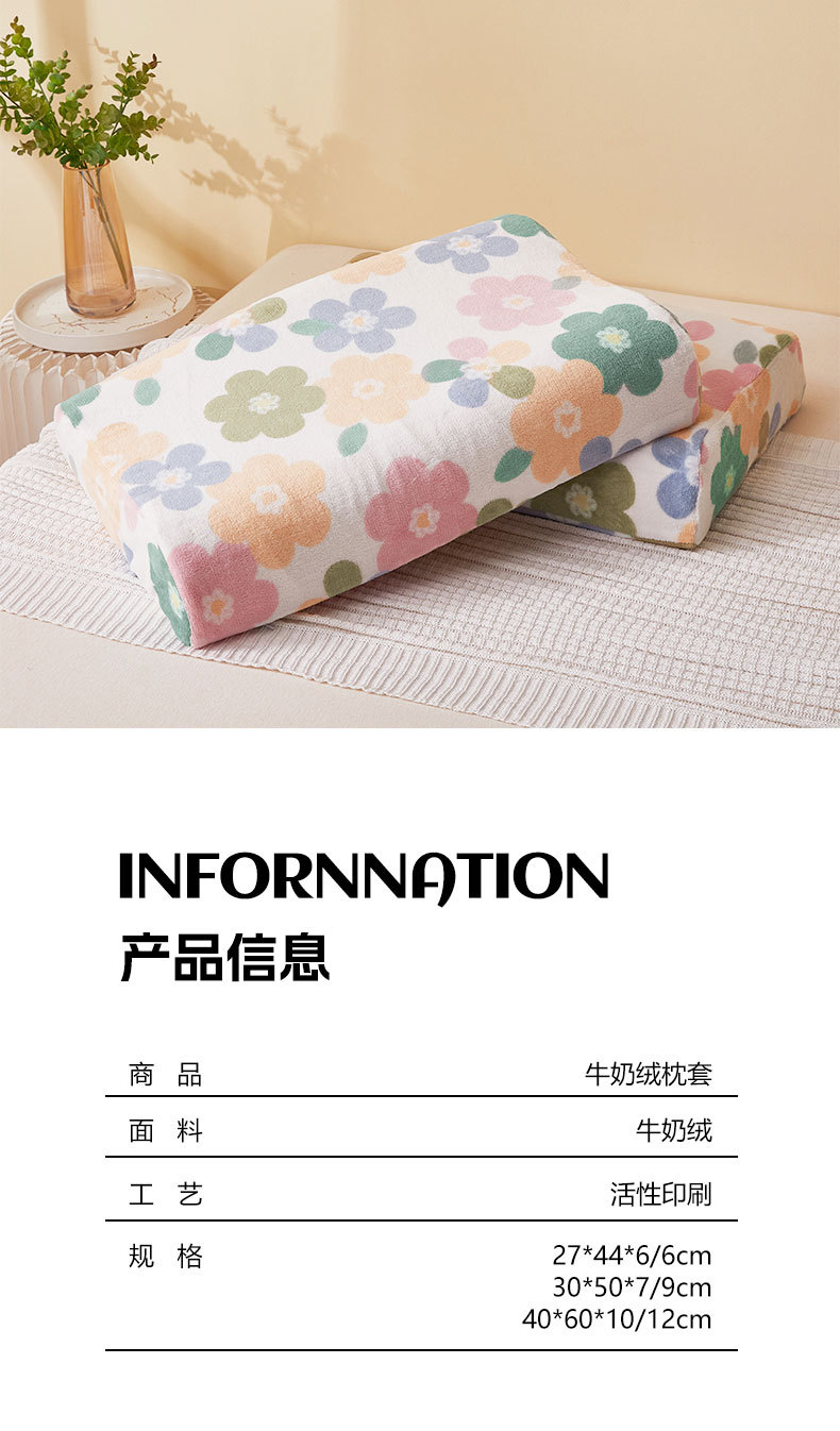 • 해피 귀여운 밀크 벨벳 라텍스 베개 커버 1팩