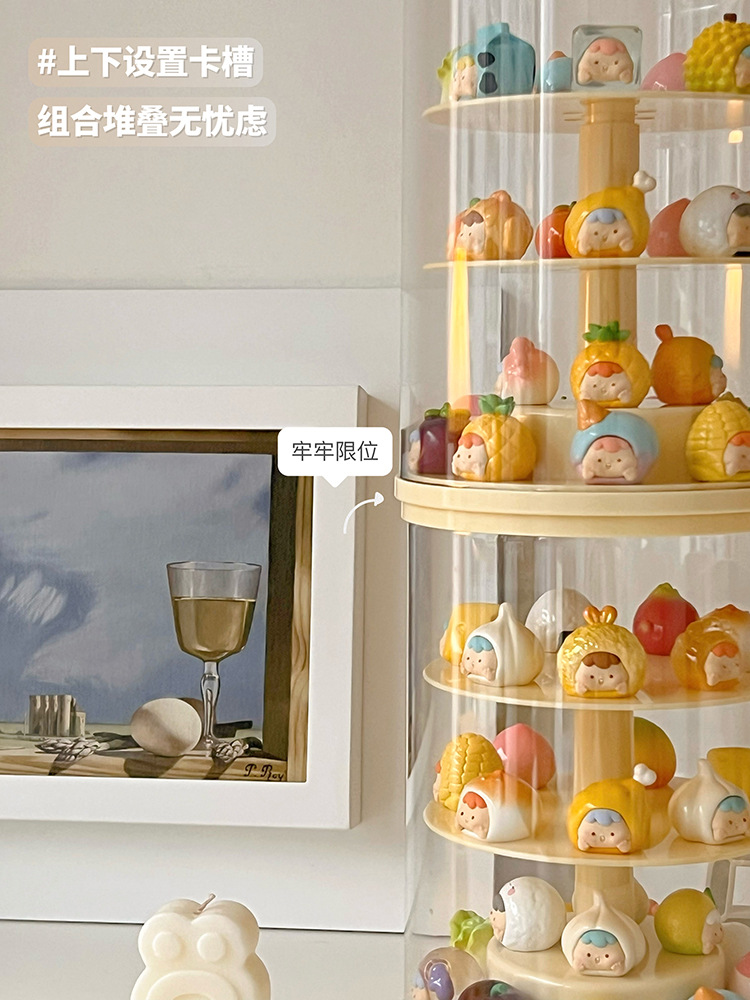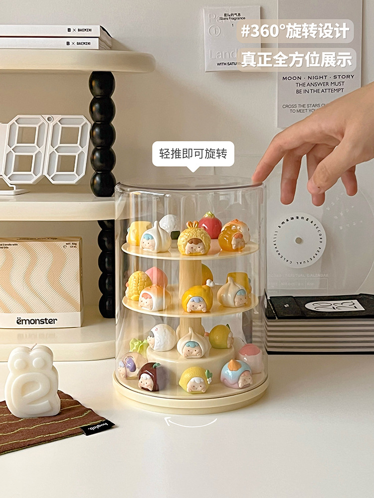회전 귀여운 곡물 디스플레이 상자 아크릴 투명 블라인드 박스 스토리지 디스플레이 랙 욕심 아기 장식품 핸드 헬드 디스플레이 캐비닛