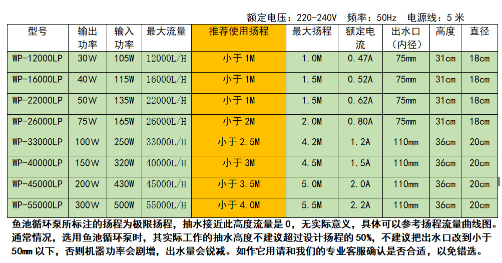 송바오 물고기 연못 파이프 펌프 잉어 연못 필터 순환 펌프 고출력 수영장 펌프 WP-12000 LP