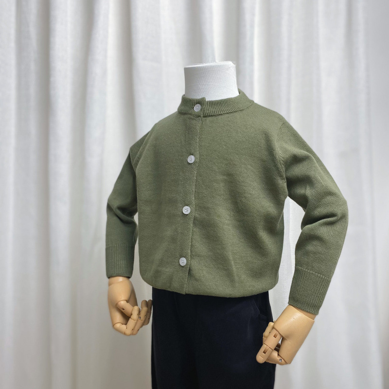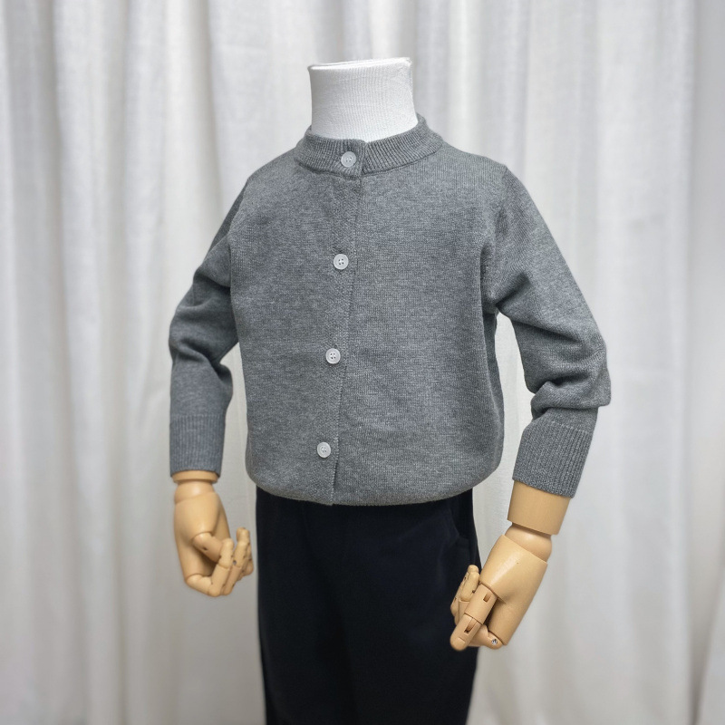2025 어린이 멀티 컬러 일반 니트 라운드 넥 카디건 소년과 소녀 봄, 가을 기질 서양식 코튼 자켓 단순스토어 가기