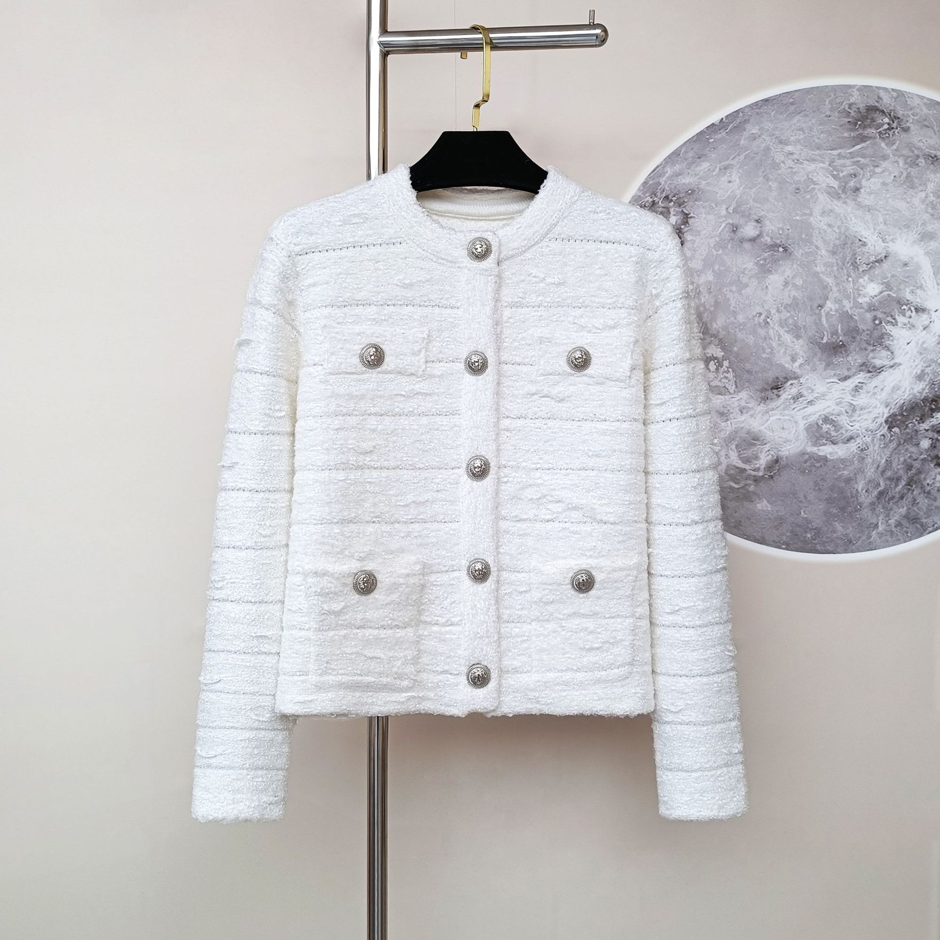 2024 가을과 겨울 새로운 프랑스 스타일 패션 라운드 넥 짧은 니트 카디건 긴 소매 금속 버클 여성용 코트