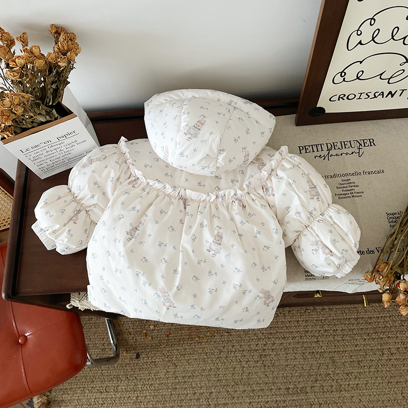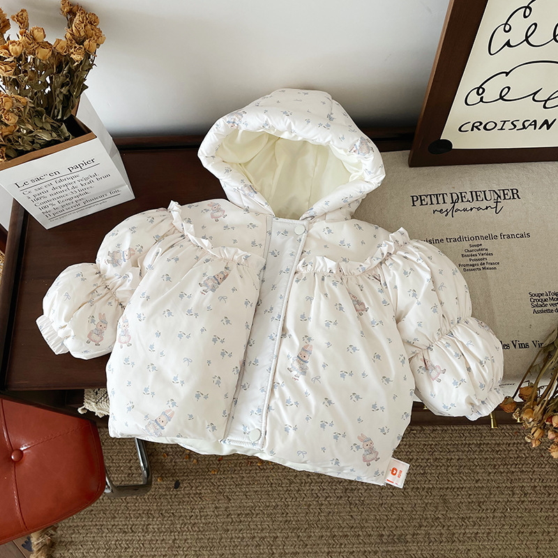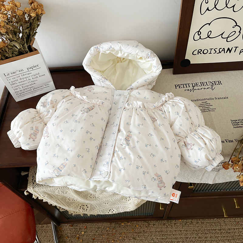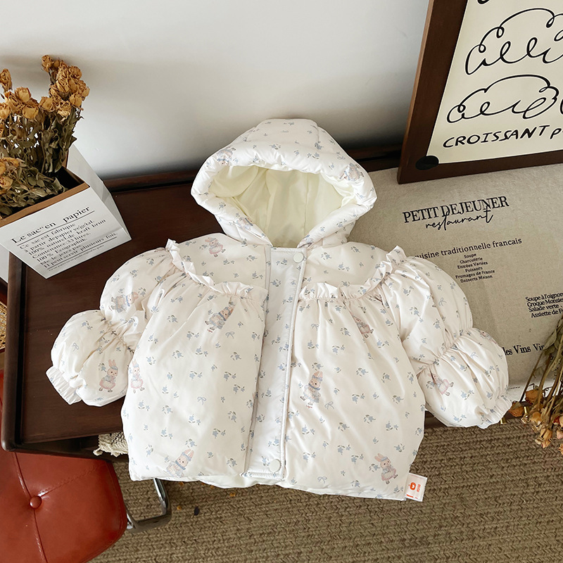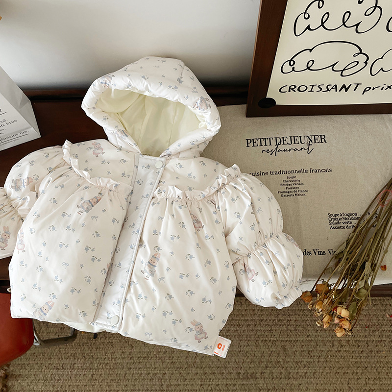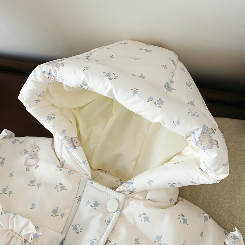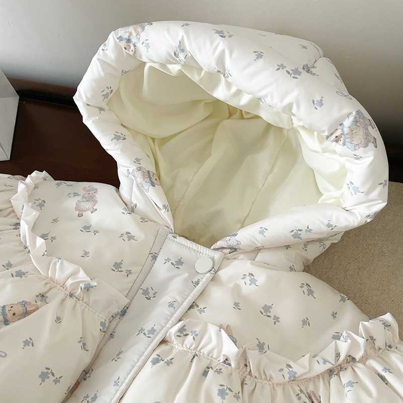 [재고] DW249897 어린이 다운 재킷 2024 새로운 국가 표준 흰 오리 다운 소녀 달콤한 꽃 후드스토어 가기