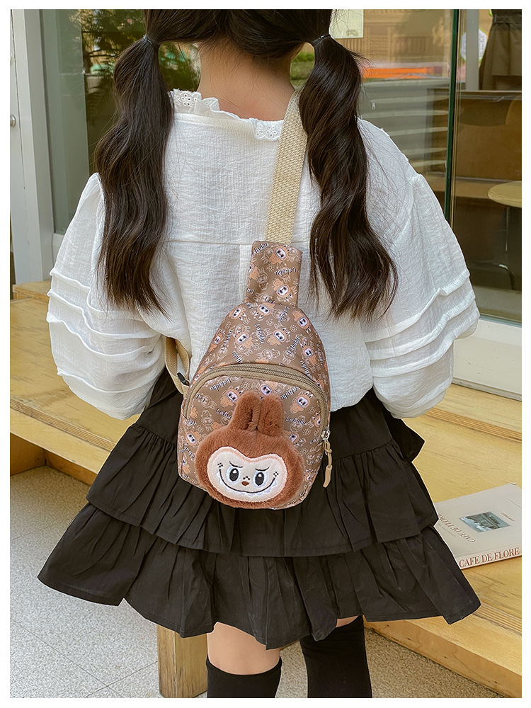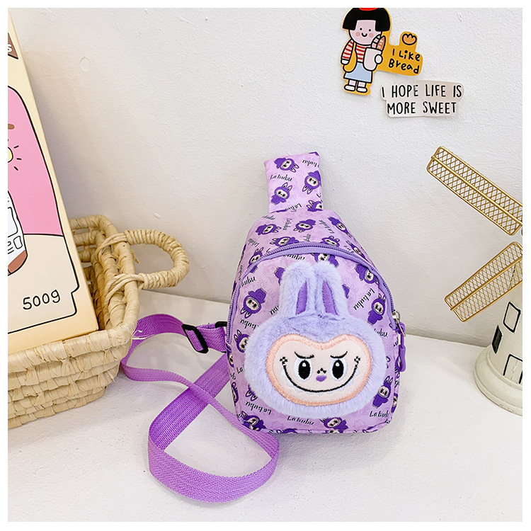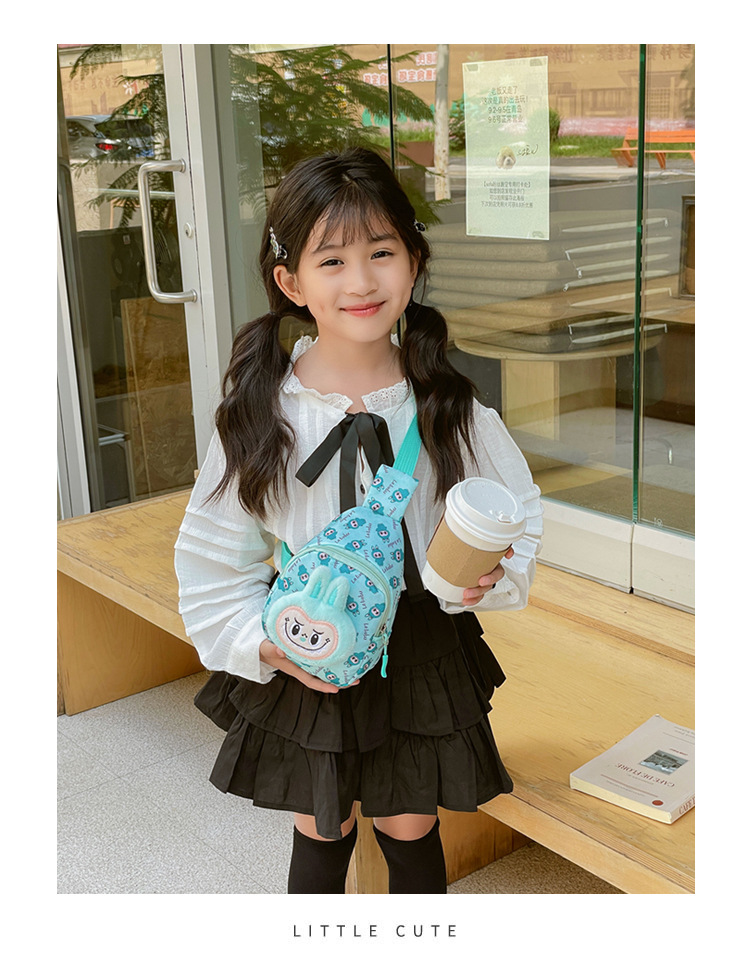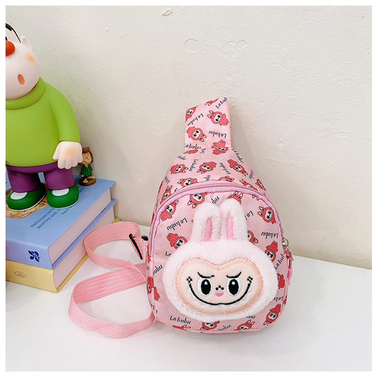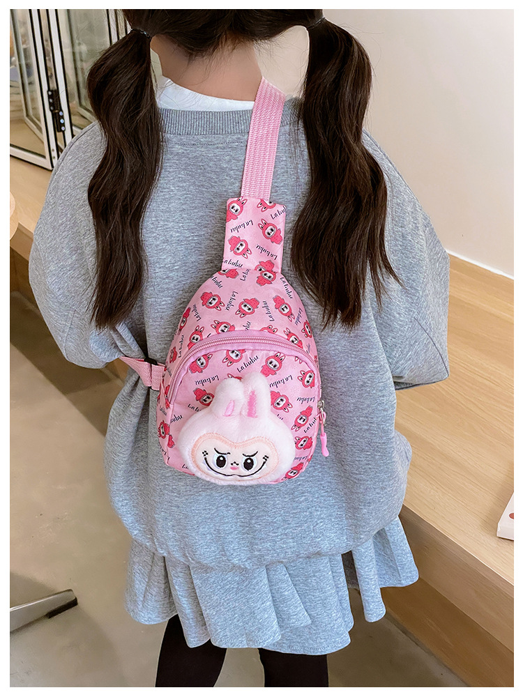 라부 어린이 가슴 가방 만화 유치원 가방 소년 소녀 학생 가방 어린이 귀여운 크로스 바디 가방 어깨 가방