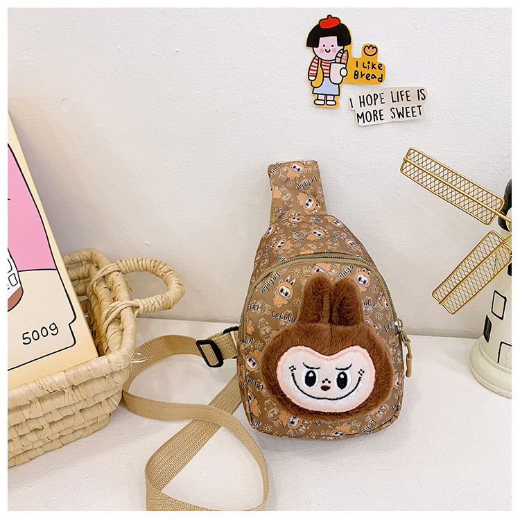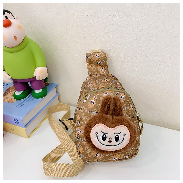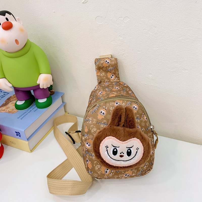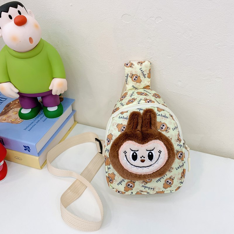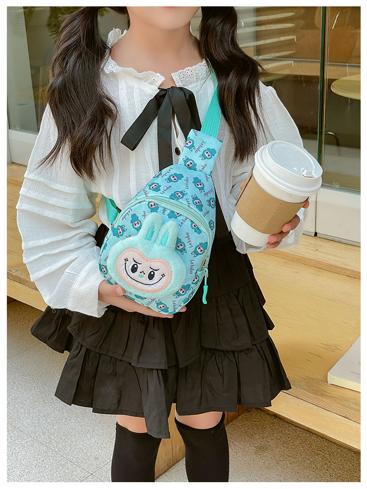 라부 어린이 가슴 가방 만화 유치원 가방 소년 소녀 학생 가방 어린이 귀여운 크로스 바디 가방 어깨 가방