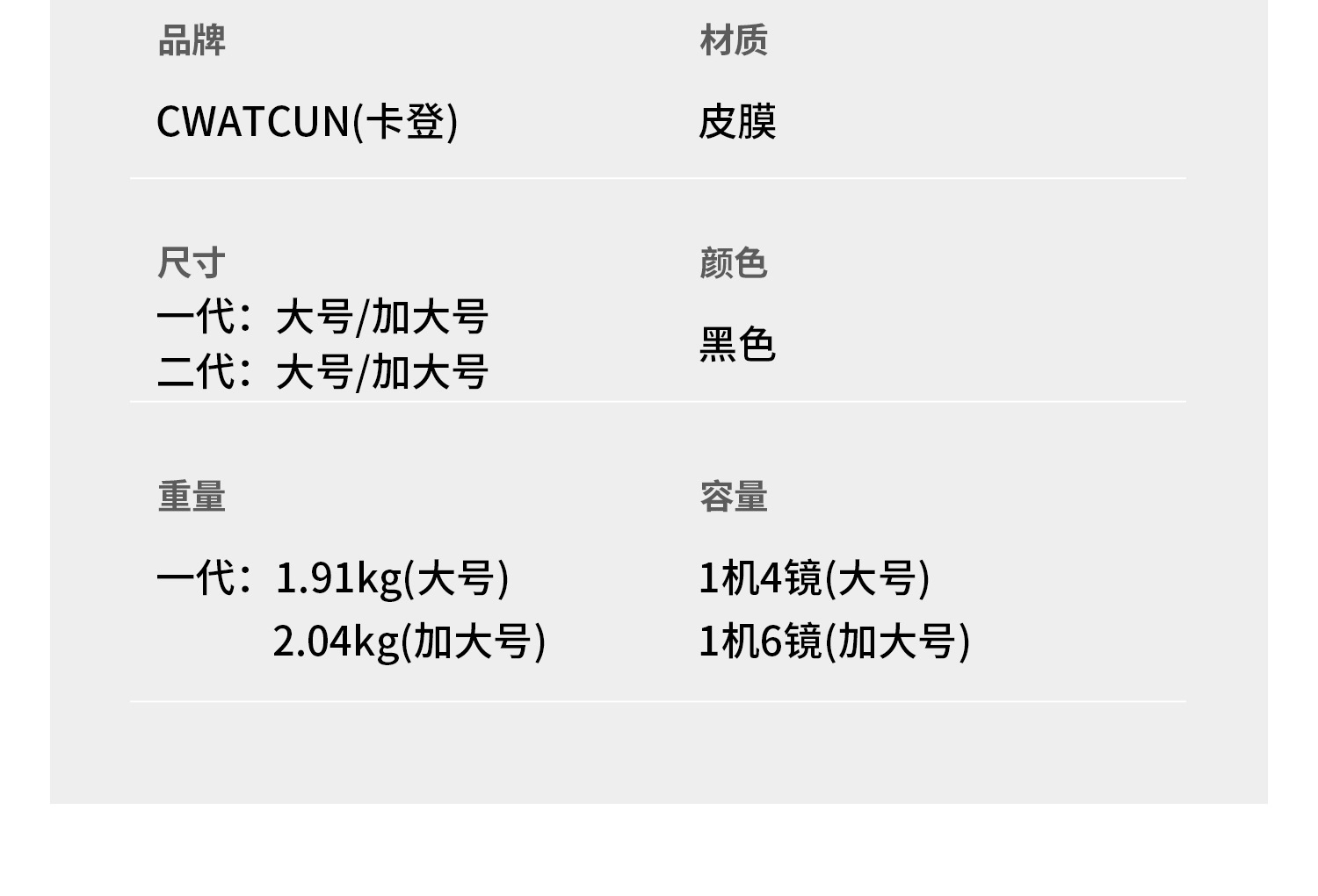 • CW 2세대 대형 사이즈 (1머신, 거울 4개 + 탈착식 벨트 + 멀티 내구 버클 + YKK 지퍼 + 측면 개방형 빠른 접근)