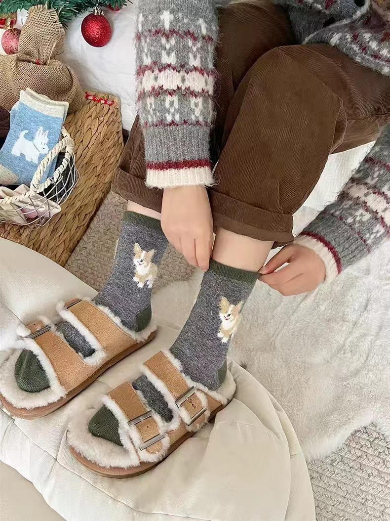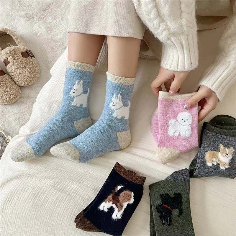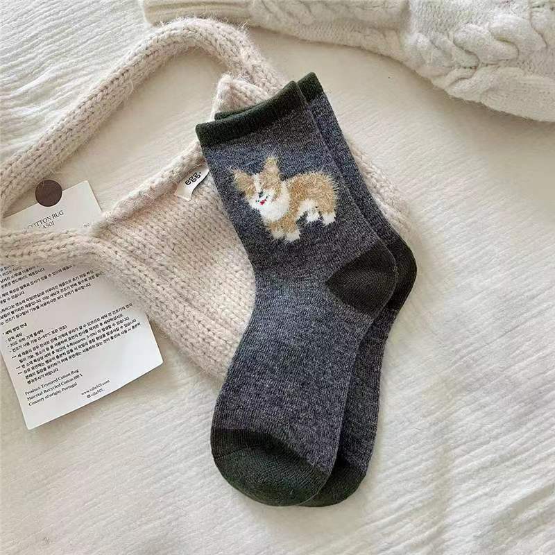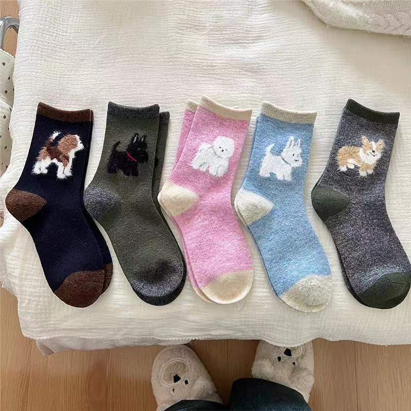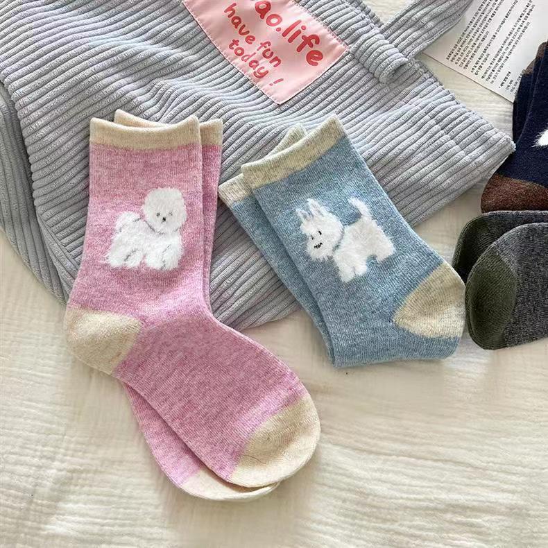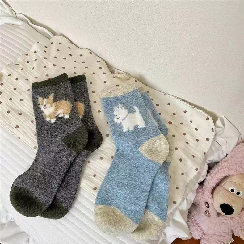 겨울 귀여운 양모 양말 일본 강아지 따뜻한 양말 두껍게 쌓인 양말 뼈없는 한국 만화 대비 양말스토어 가기