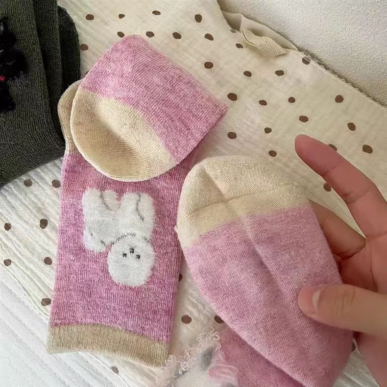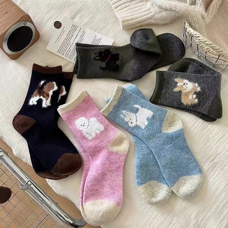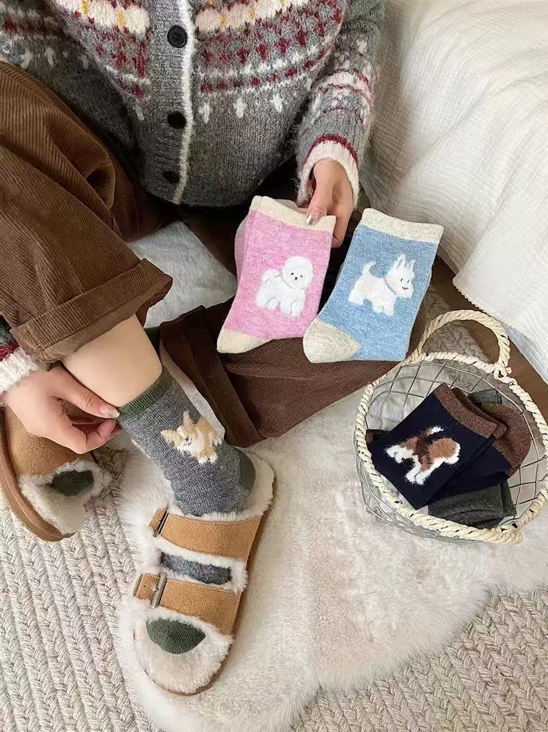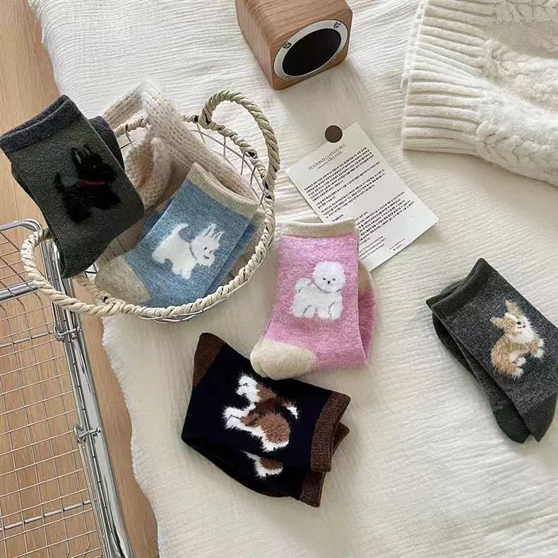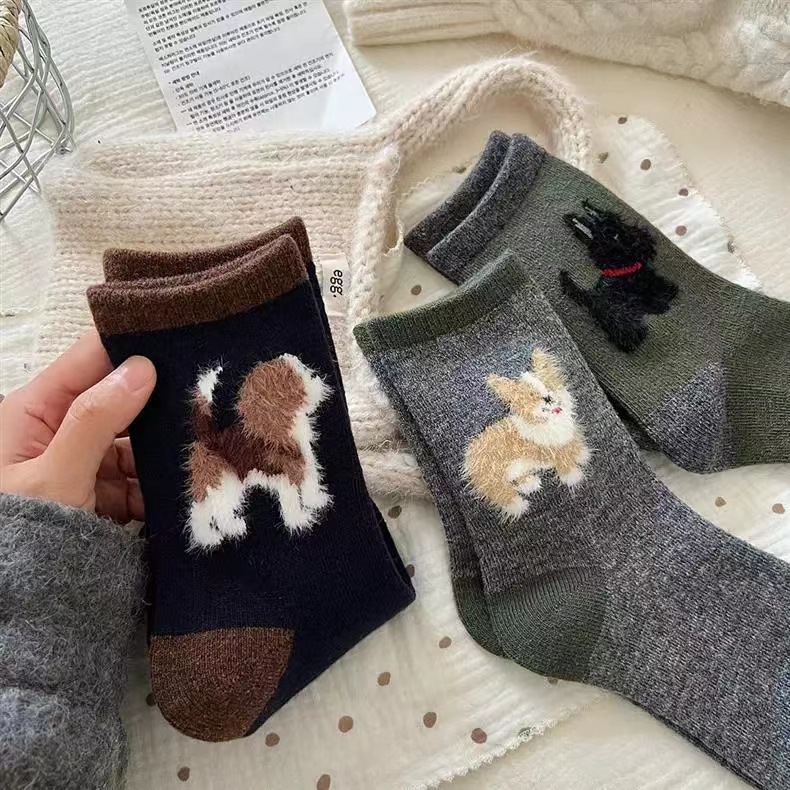 겨울 귀여운 양모 양말 일본 강아지 따뜻한 양말 두껍게 쌓인 양말 뼈없는 한국 만화 대비 양말스토어 가기