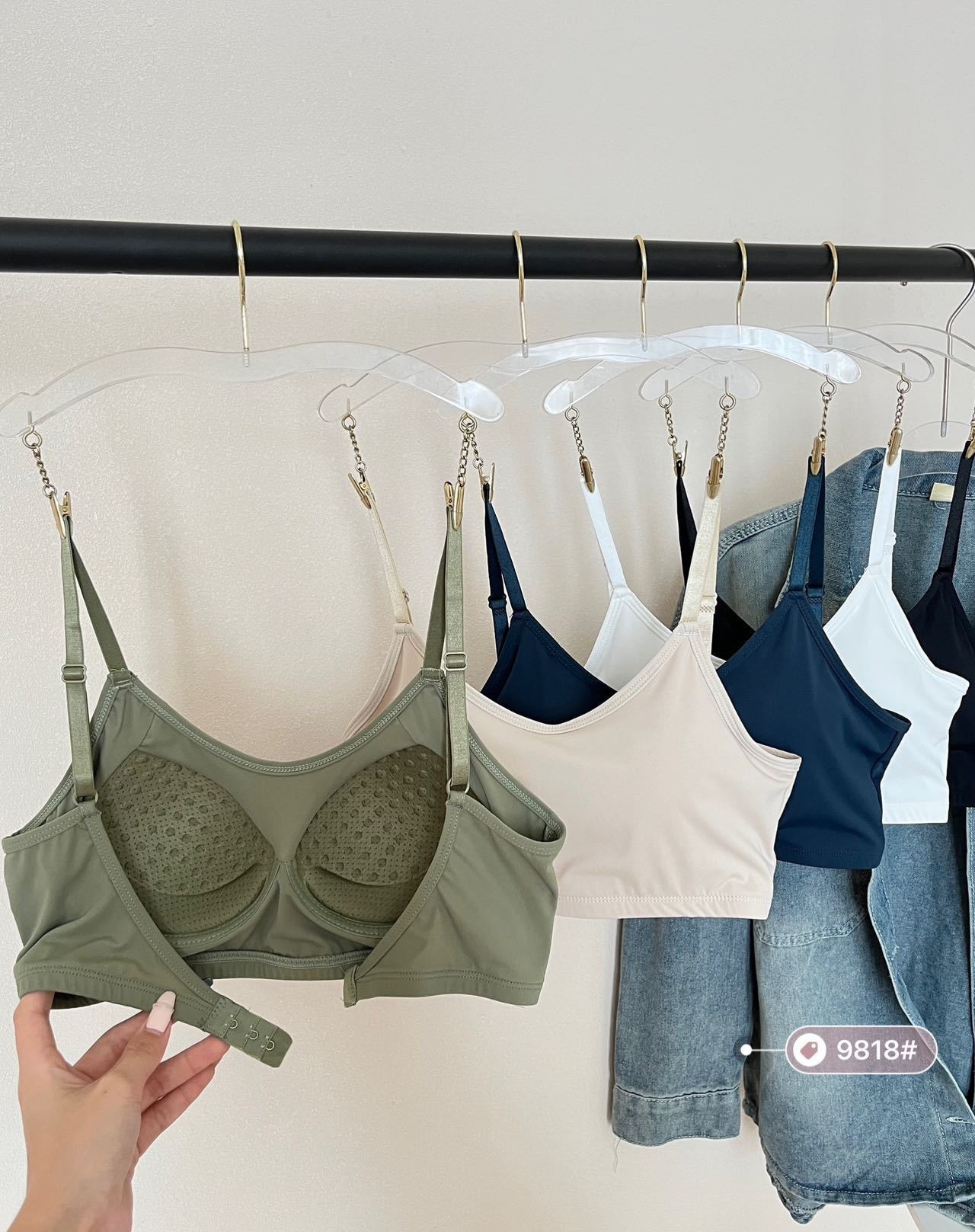 새로운 얼음 실크 카미 솔 작은 조끼 다시 버클 아름다운 뒤로 고정 컵 포장 된 가슴 강철 반지 탑 브래지어 속옷 브래지어