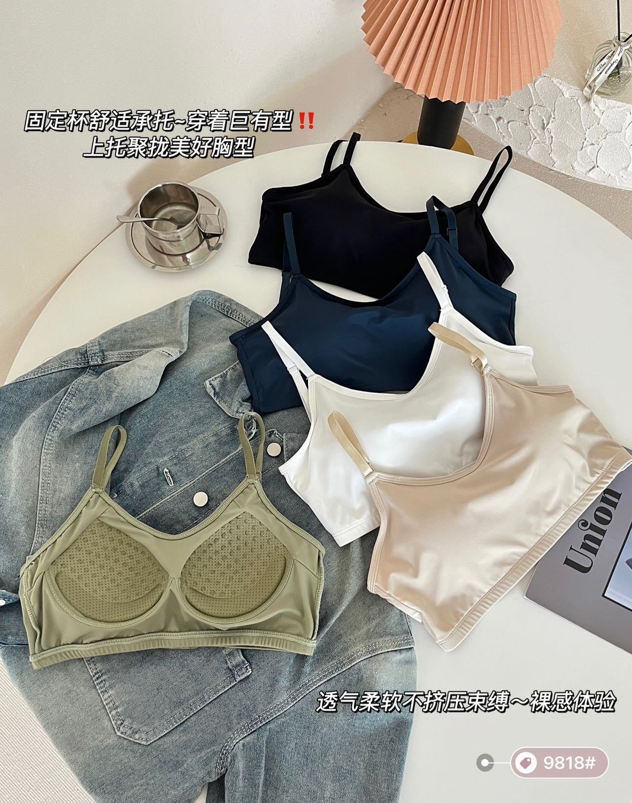 새로운 얼음 실크 카미 솔 작은 조끼 다시 버클 아름다운 뒤로 고정 컵 포장 된 가슴 강철 반지 탑 브래지어 속옷 브래지어스토어 가기