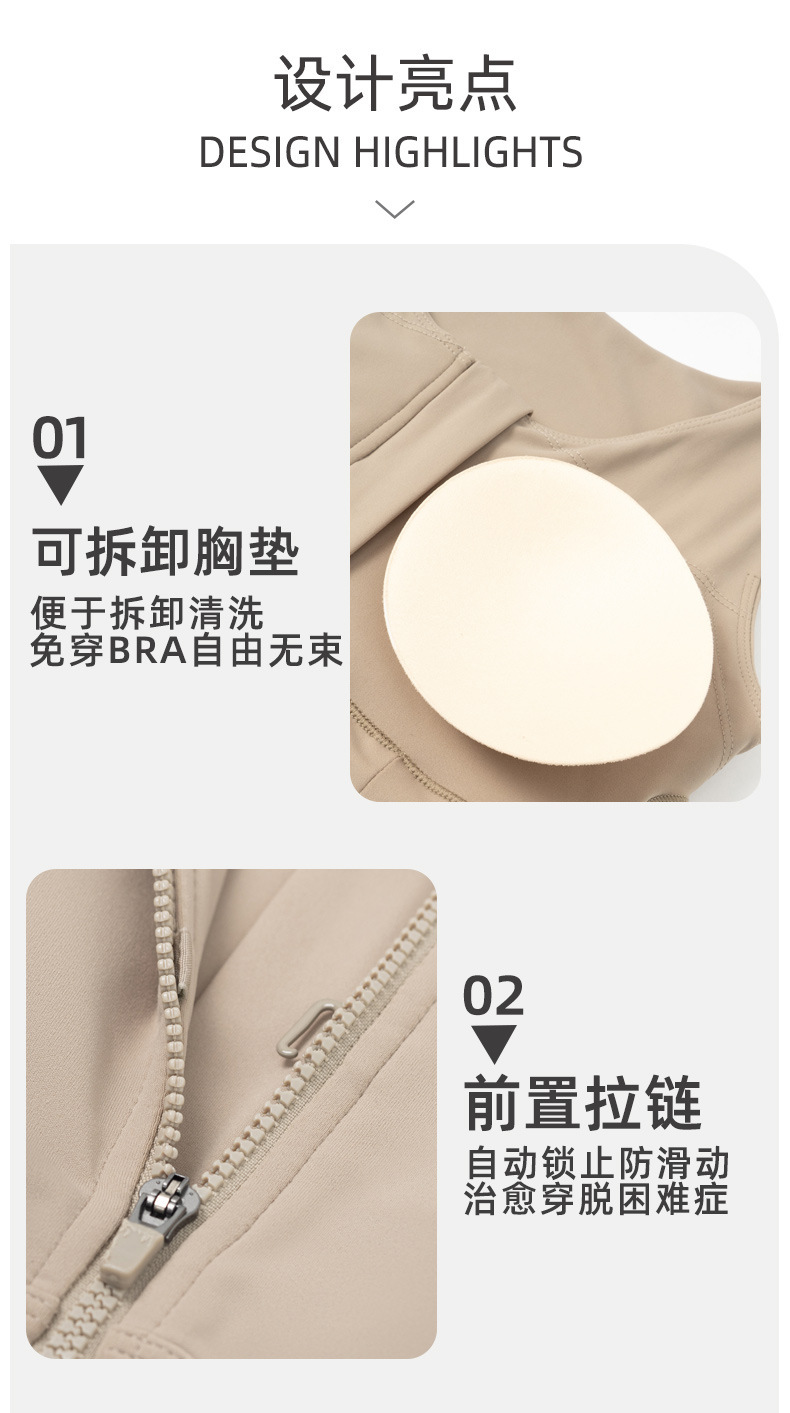 피부 친화적 인 누드 스포츠 브래지어 탈착식 가슴 패드가 다시 모인 피트니스 러닝 요가 재킷