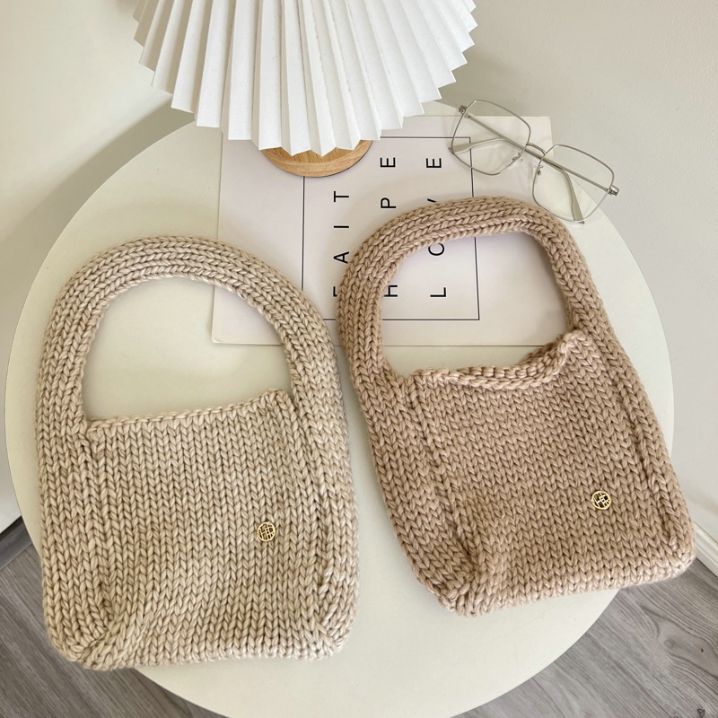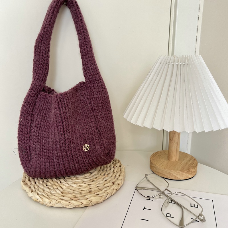 2024 새로운 양모 니트 두꺼운 바늘 핸드 백 재고 한국 솔리드 컬러 핸드백 가을과 겨울 Ins 트렌디스토어 가기