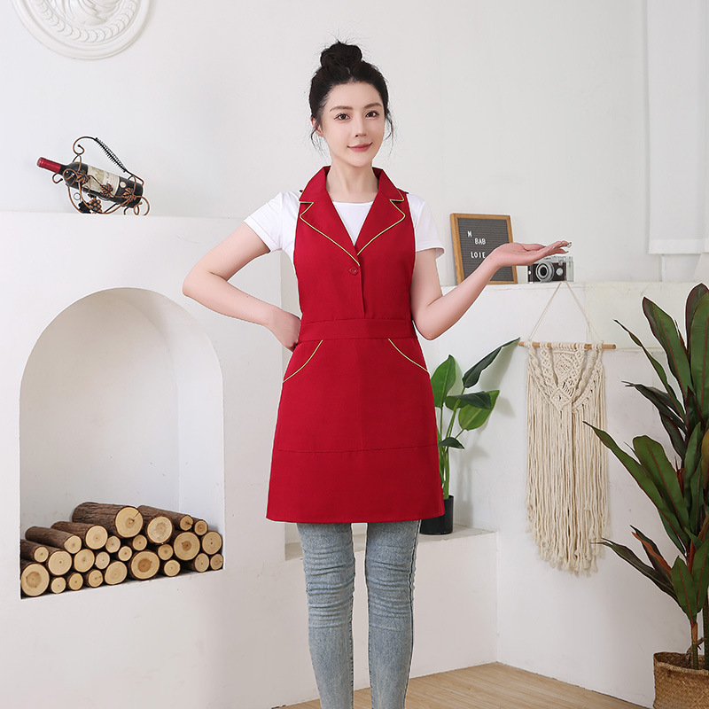 정장 작업복, 라펠 칼라, 커피숍, 밀크티샵, 네일샵, 미용 및 네일 아트, 아름다운 두꺼운 창의적인 칼라 앞치마스토어 가기