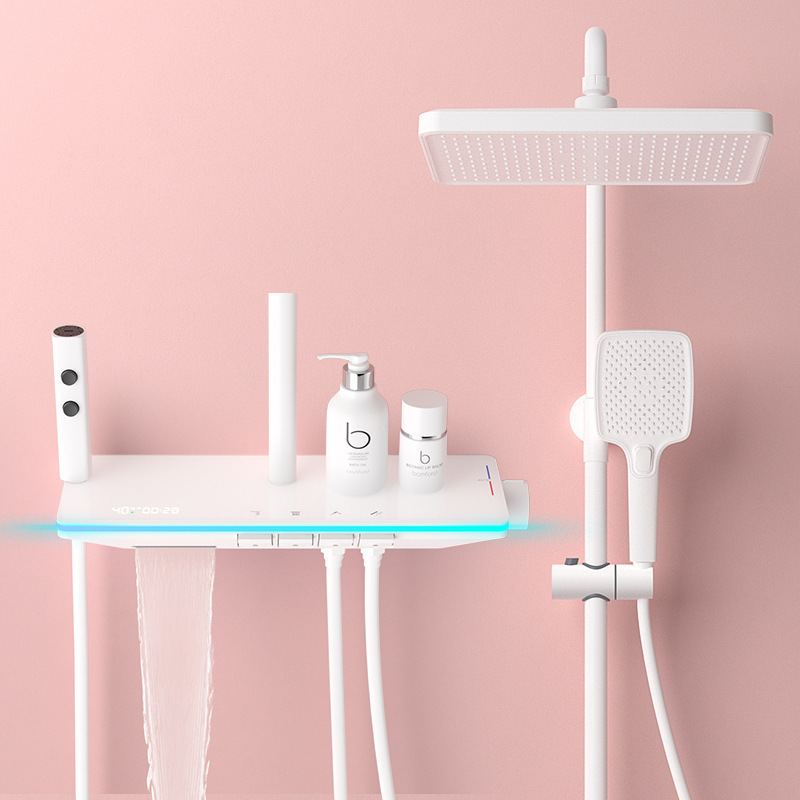 Ouhui Sanitary Ware 지능형 디지털 디스플레이 가구 샤워 비 피아노 키 일정한 온도 샤워 세트 화이트