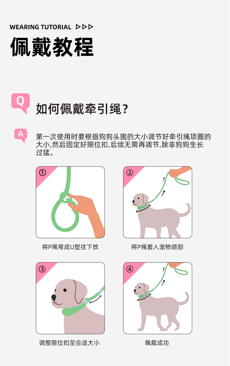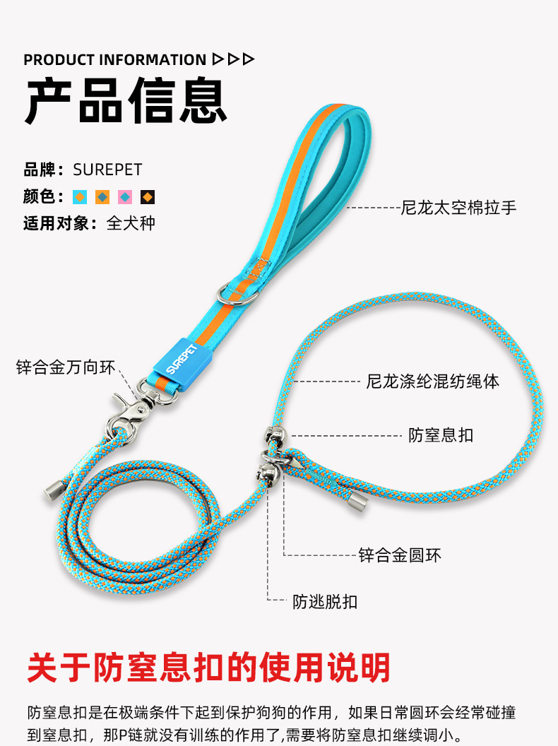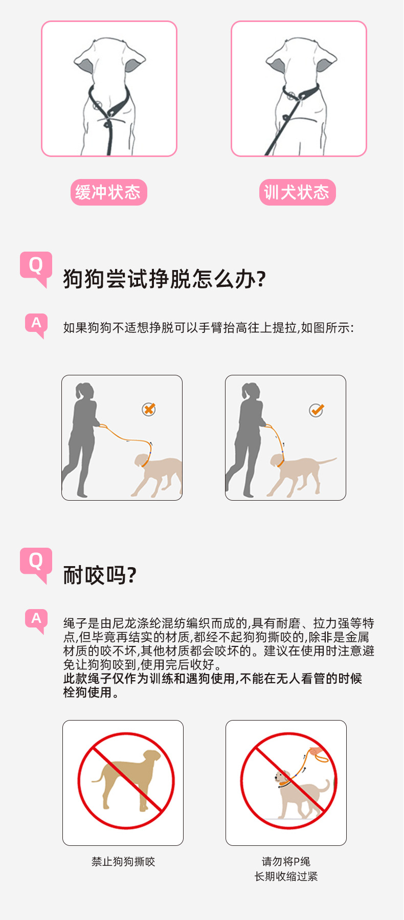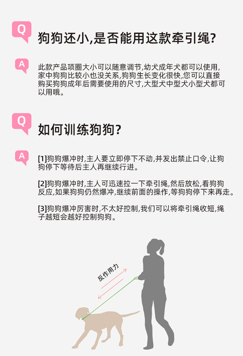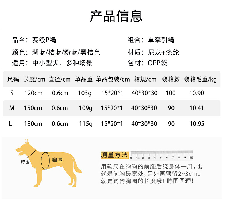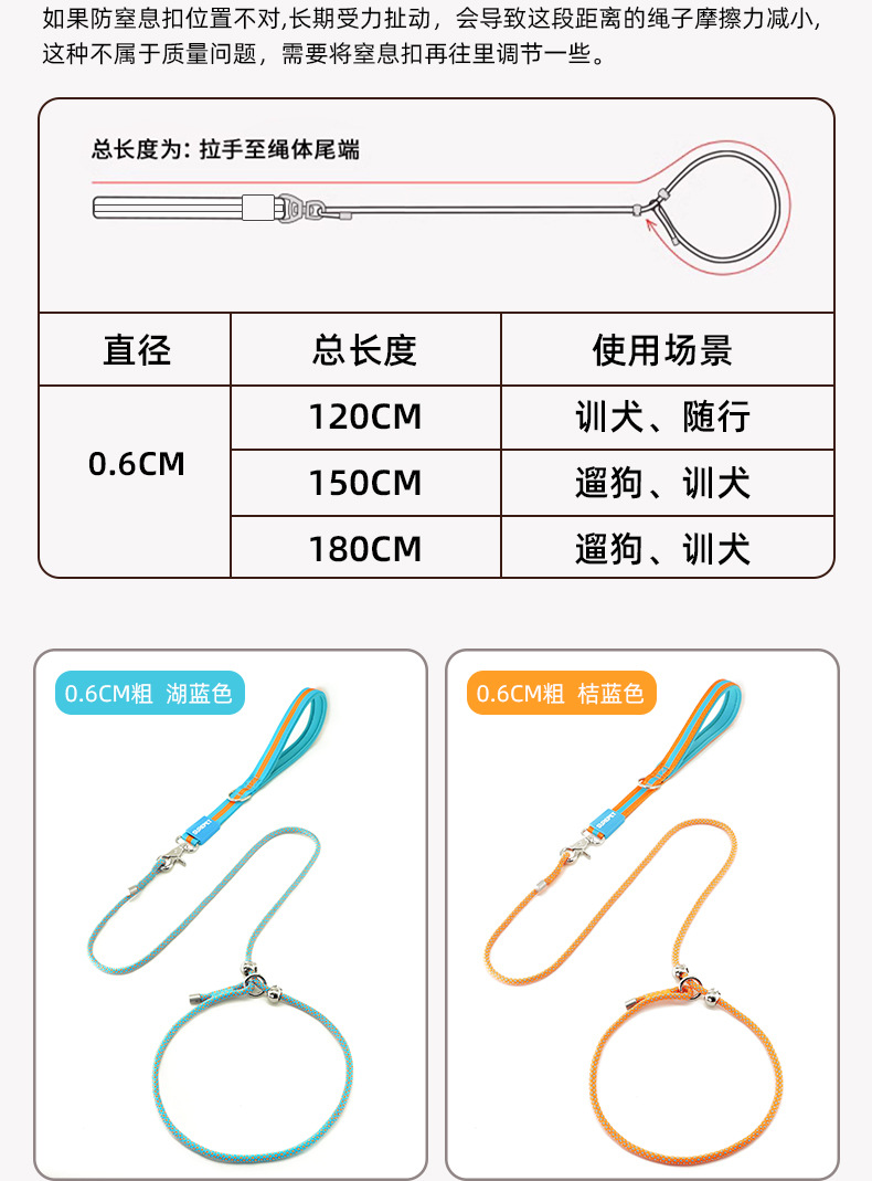 • 전체 길이 150cm, 지름 6mm [개 훈련 및 개 산책에 적합, 0.5-60kg 이하]