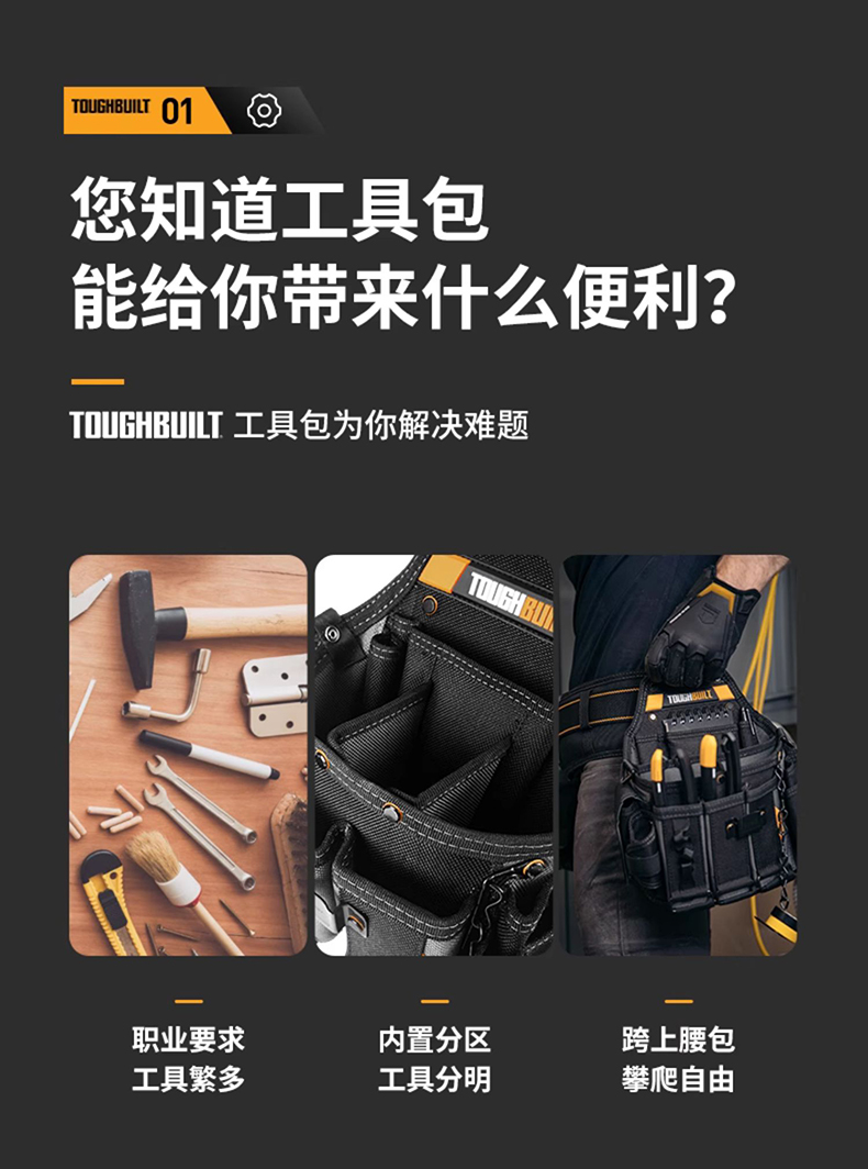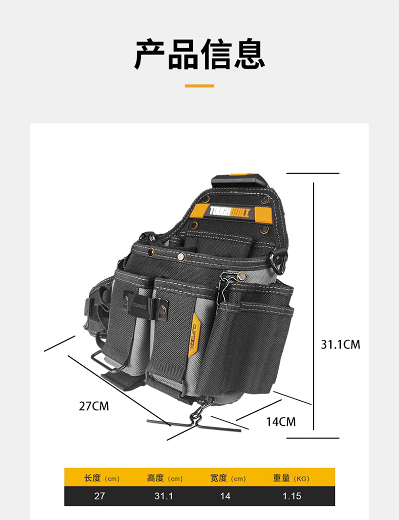 TOUGHBUILT Topband 전기 마스터 특수 툴킷 다기능 목공 크로스 바디 허리 가방스토어 가기
