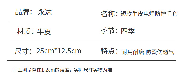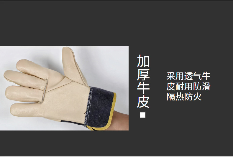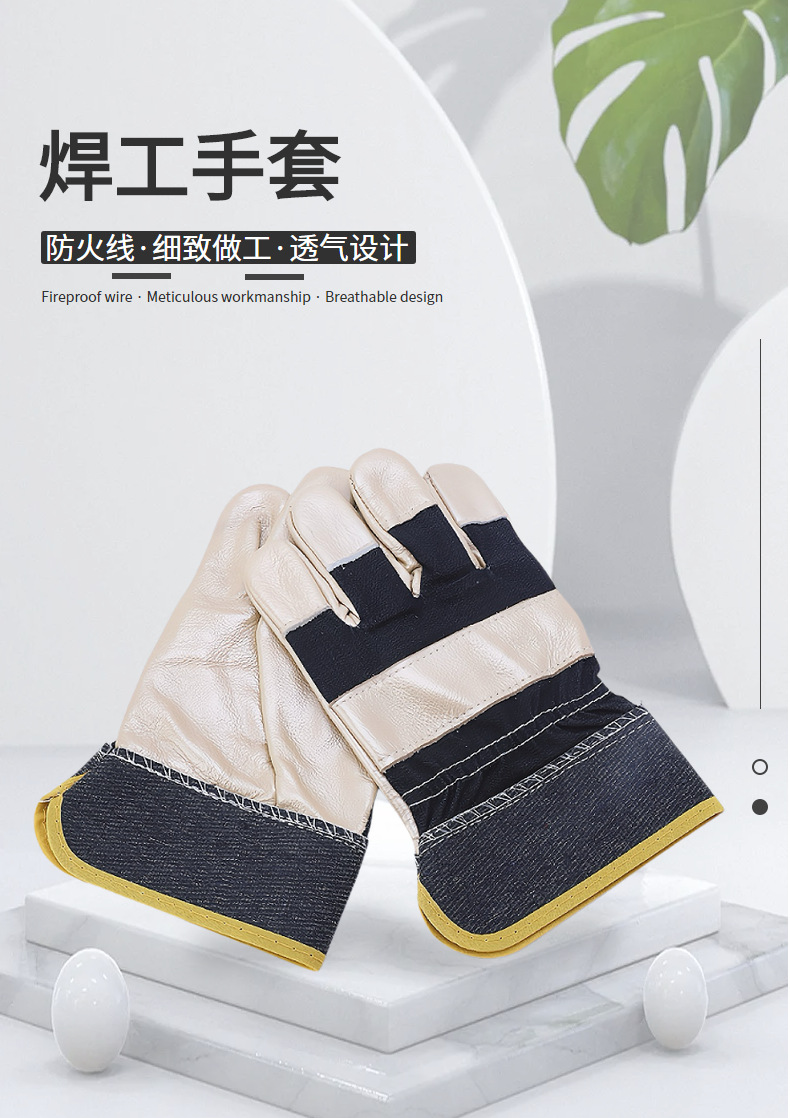 용접 장갑, 1층 소가죽, 고온 저항, 화상 방지, 단열 장갑, 산업용 보호 장갑, 짧은 스타일, 재고 도매스토어 가기