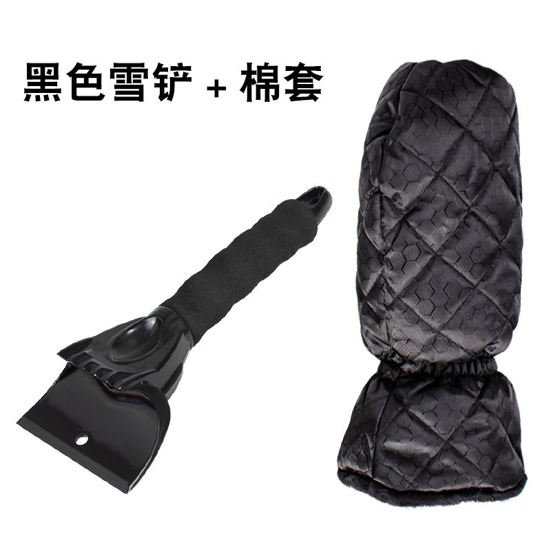 • 구멍이 있는 작은 눈삽 + 장갑 - 검정색