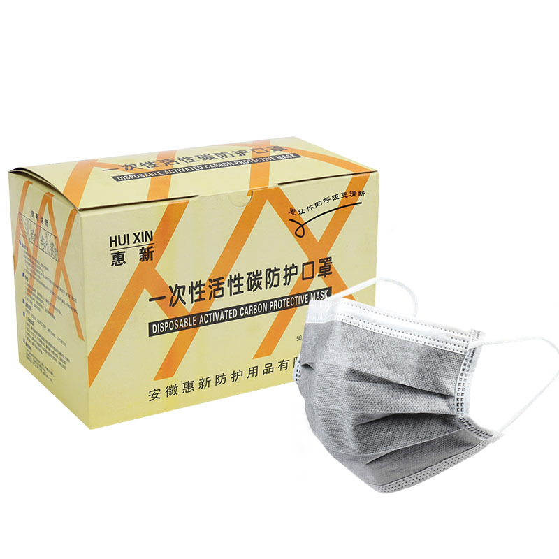 일회용 활성 탄소 마스크 가장자리에 매달린 귀 매달린 4 층 두꺼운 회색 별도의 통기성 마스크스토어 가기