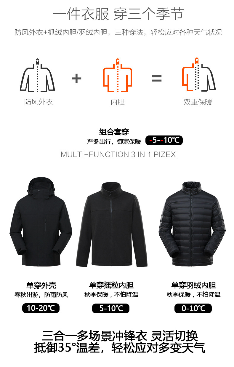 GB 충전 재킷 남자 봄 가을 겨울 2024 새로운 3 대 1 야외 캐주얼 작업복 소년 재킷 탑