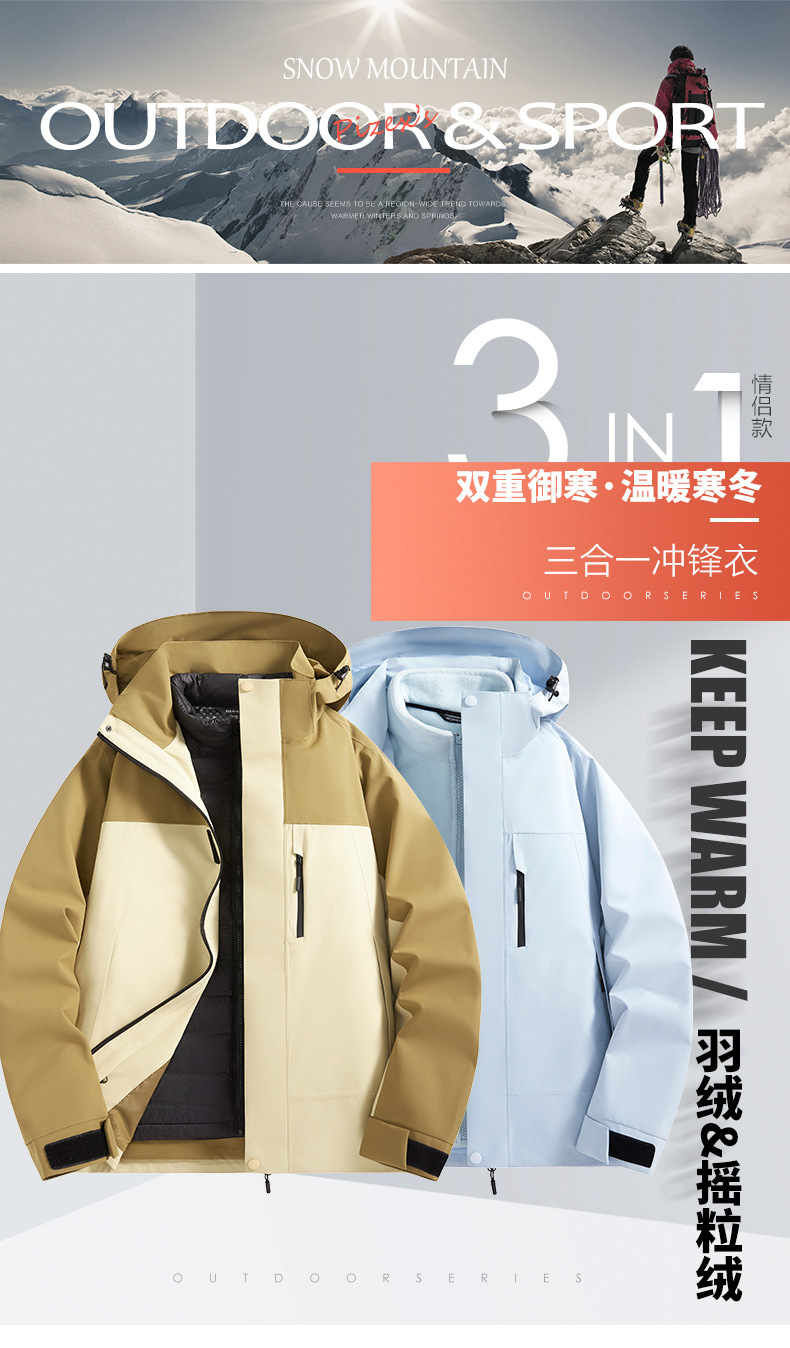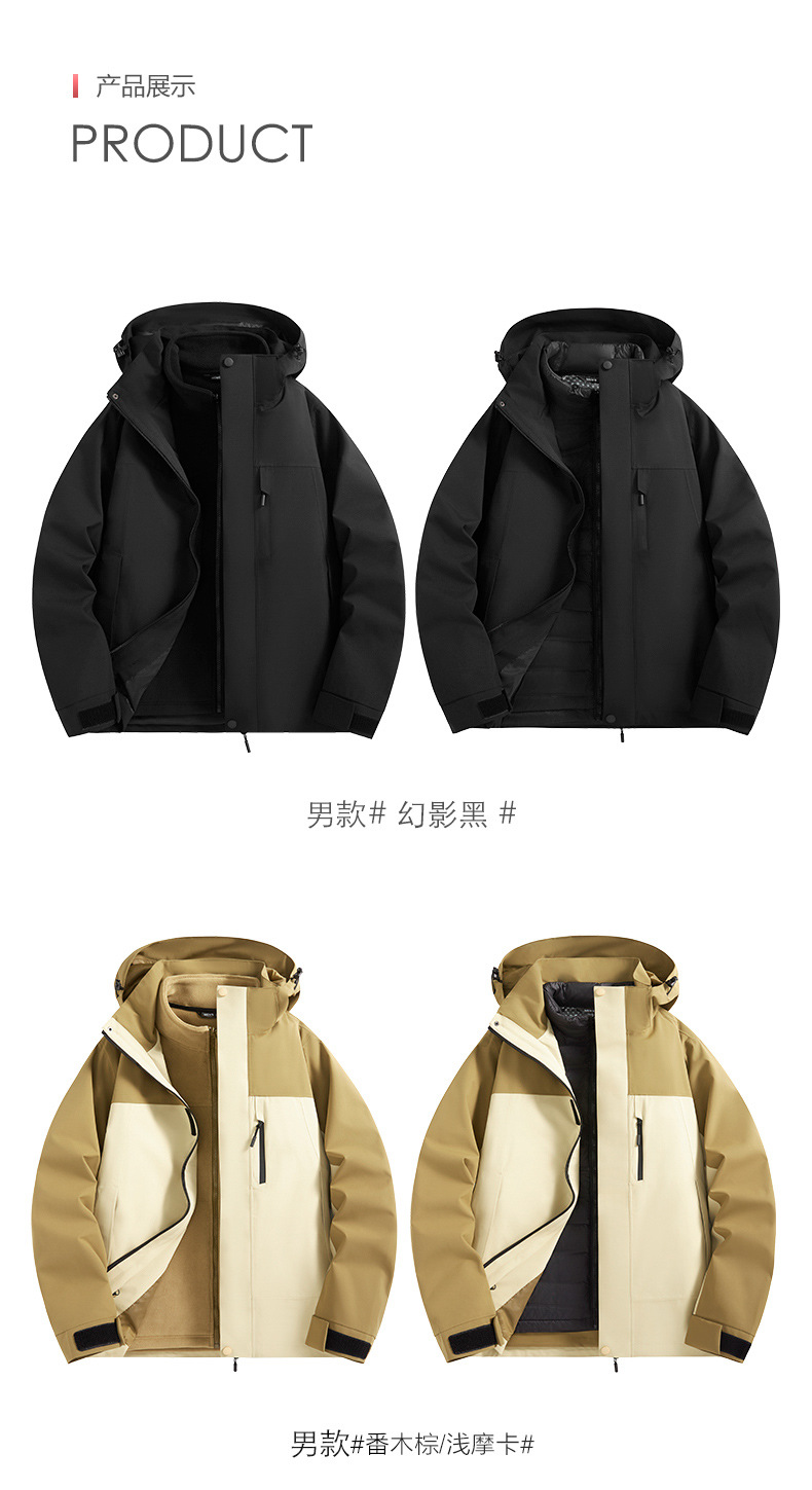 GB 충전 재킷 남자 봄 가을 겨울 2024 새로운 3 대 1 야외 캐주얼 작업복 소년 재킷 탑스토어 가기