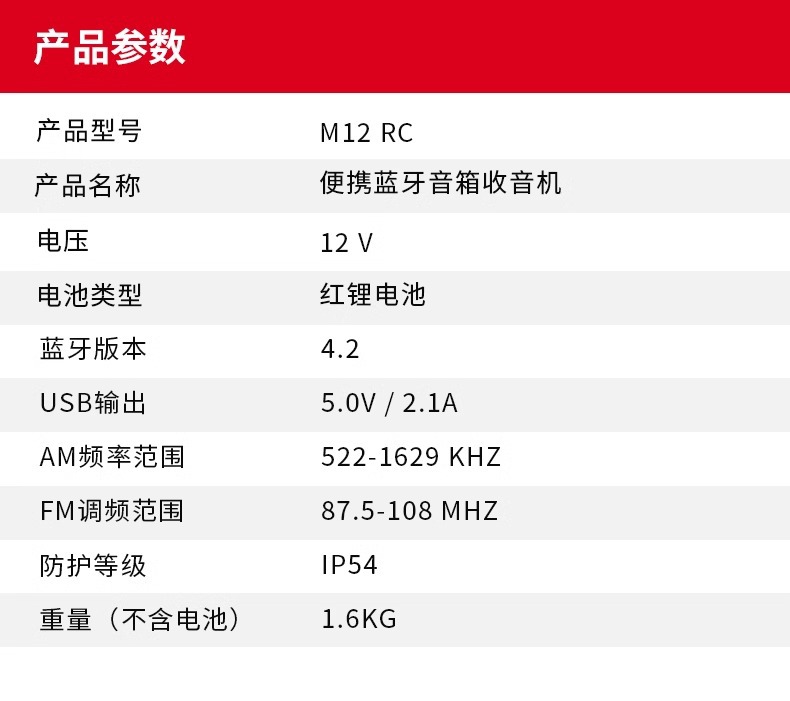 Milwaukee M12 RC 휴대용 블루투스 오디오 라디오 야외 캠핑 장비스토어 가기
