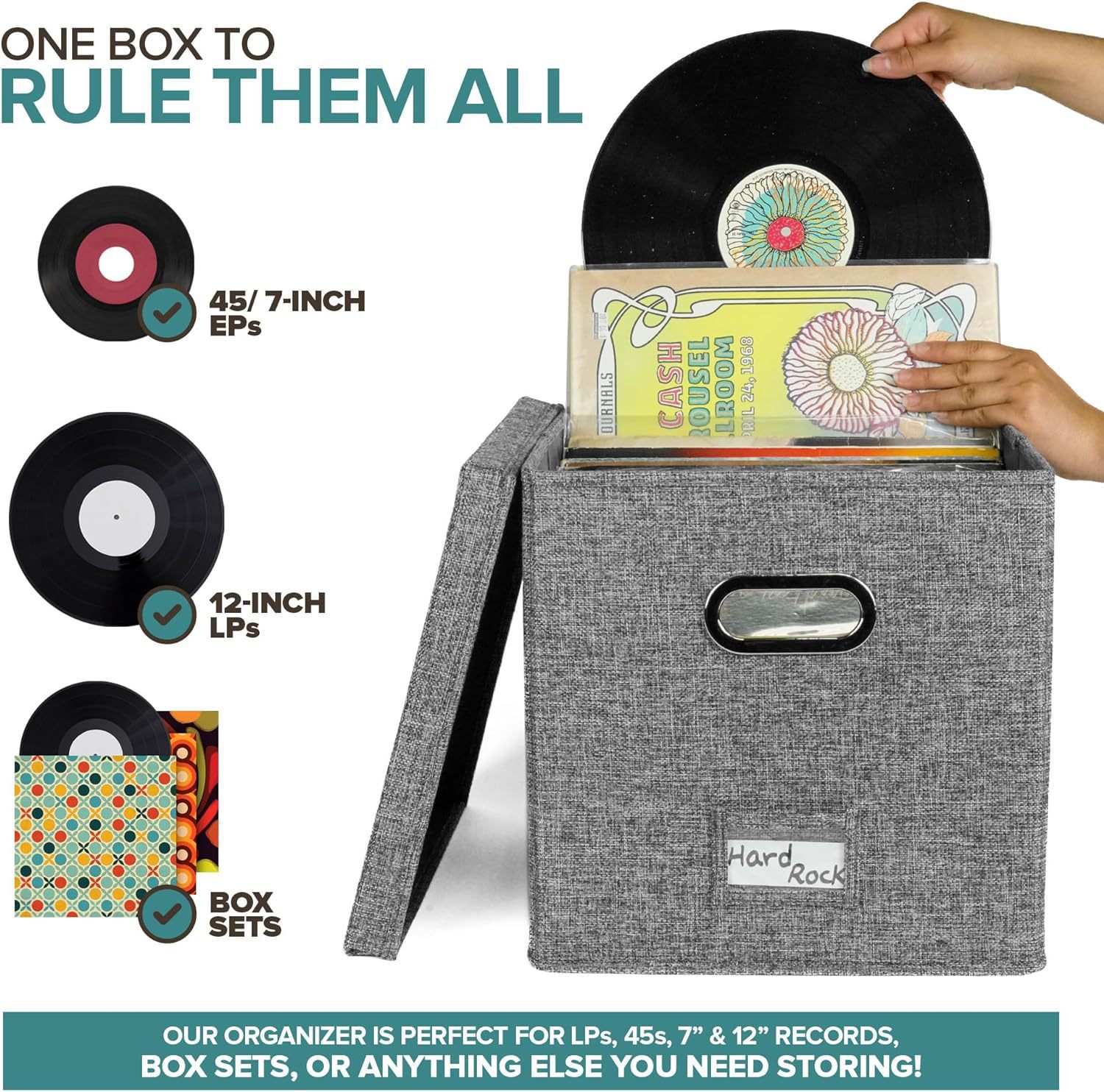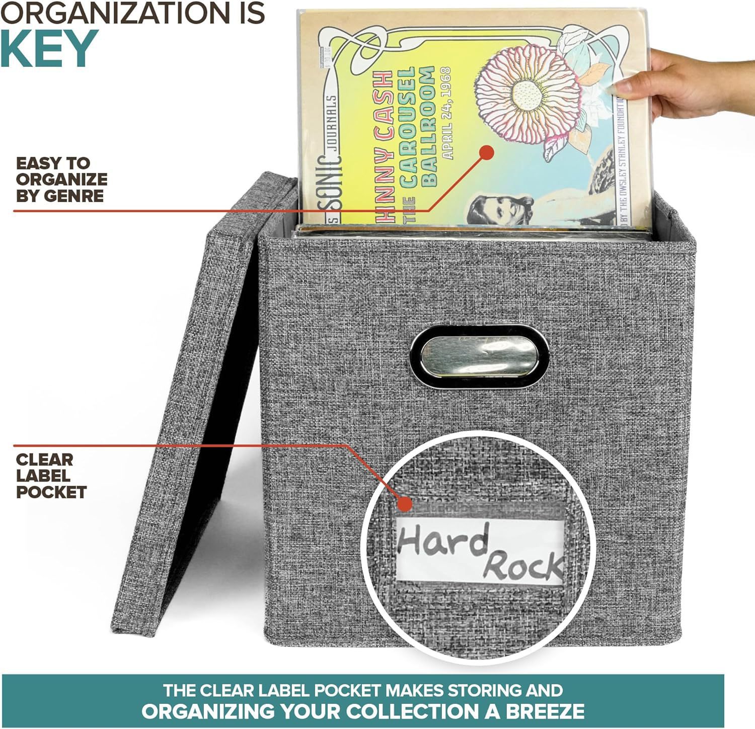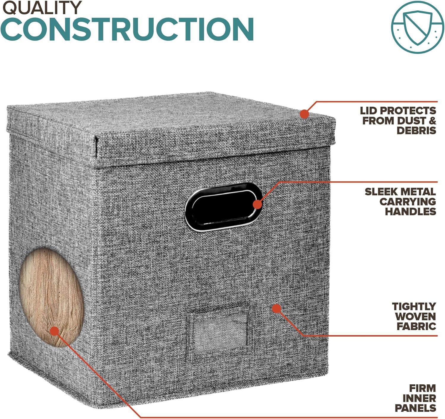 재고 있음 국경 간 면 및 린넨 패브릭 보관 상자 접이식 뚜껑이 있는 가정용 비닐 레코드 보관 상자