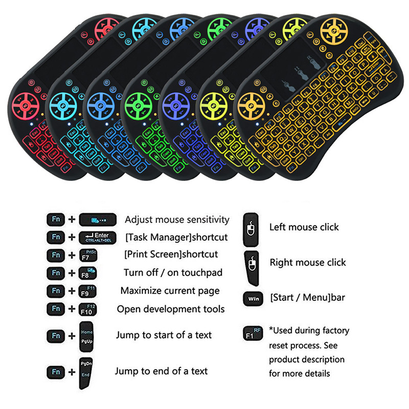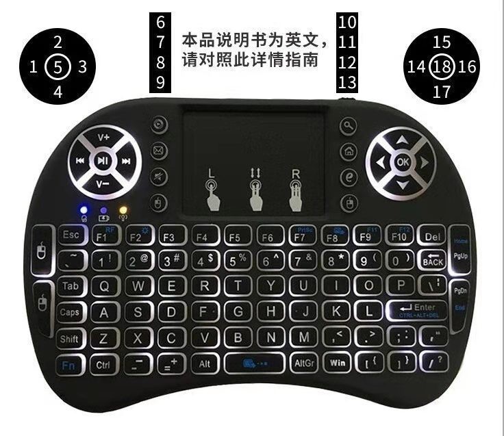 I8 비행 다람쥐 원격 제어 미니 키보드 2.4G 무선 핸드 헬드 키보드 발광 키패드 키보드 마우스 두